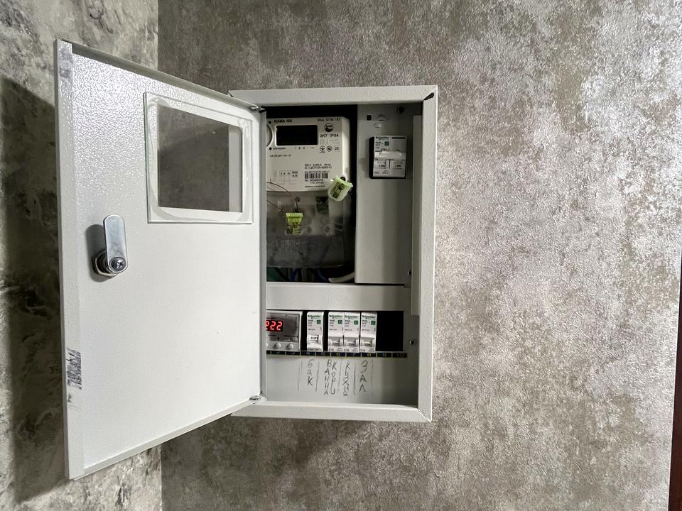 Полностью заменена электропроводка, установлены все новые выключатели и розетки.