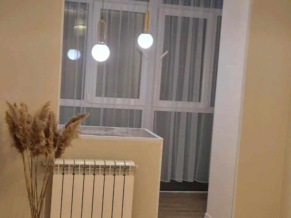 В квартирі зроблене перепланування, кухня-студія та окрема затишна спальня, яка поєднана з лоджією. В квартирі якісний ремонт виконаний із дорогих матеріалів. Замінена електропроводка, тепла підлога з терморегулятором на балконі, в ванній кімнаті та коридорі, також збережені радіатори опалення (нові. )