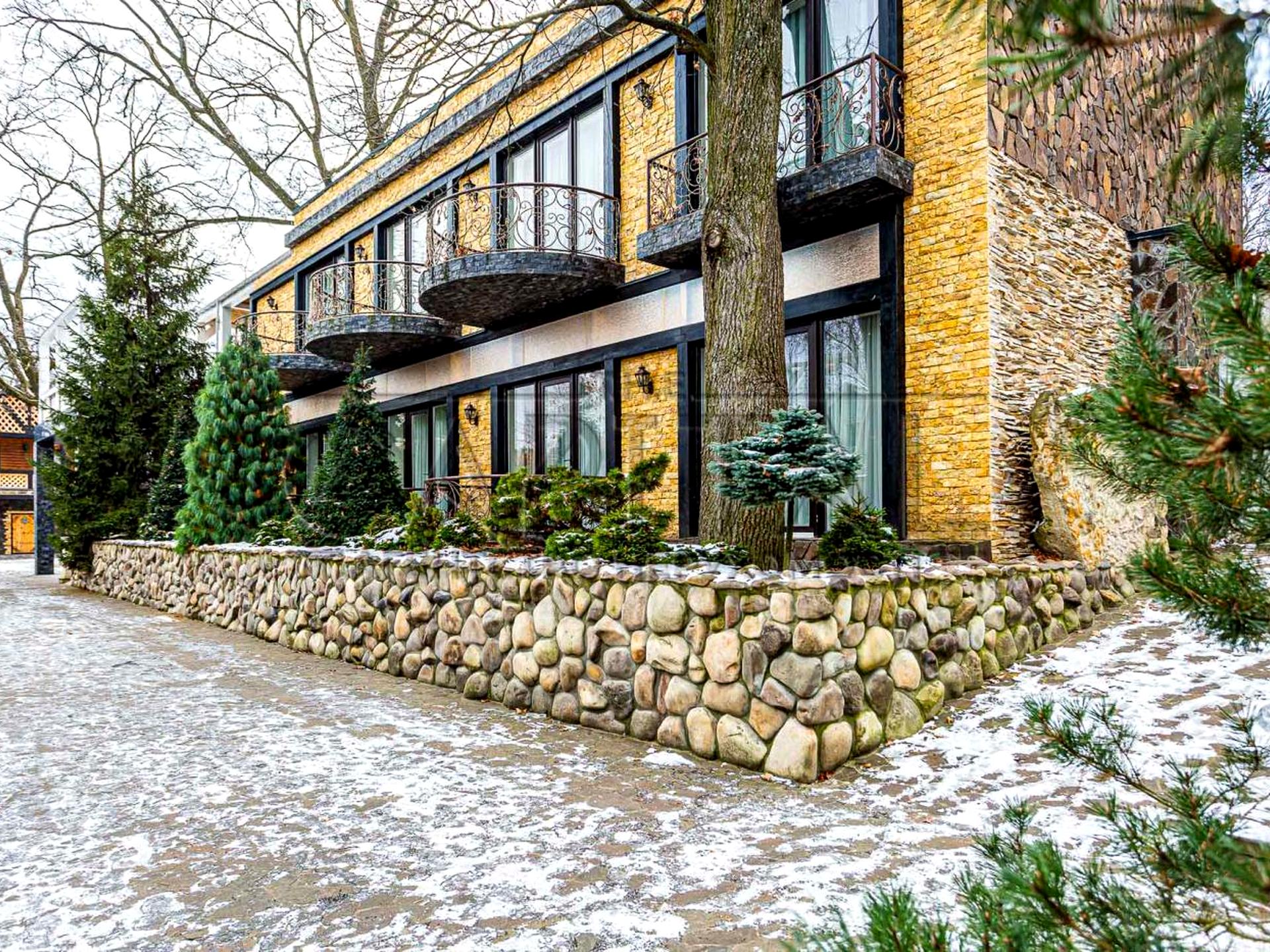 Первый состоит из каминного зала, кухни, 3 номеров, стекленной террасы, хамама и нескольких санузлов.