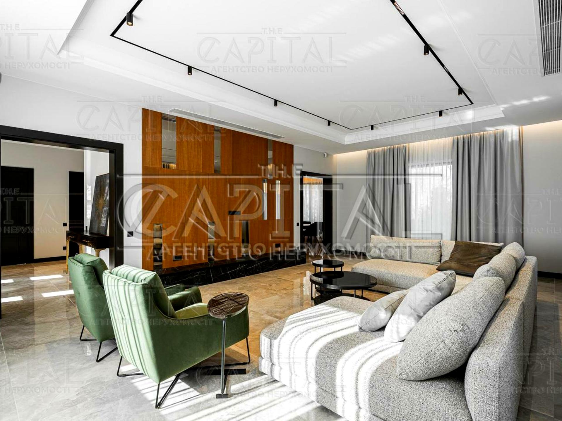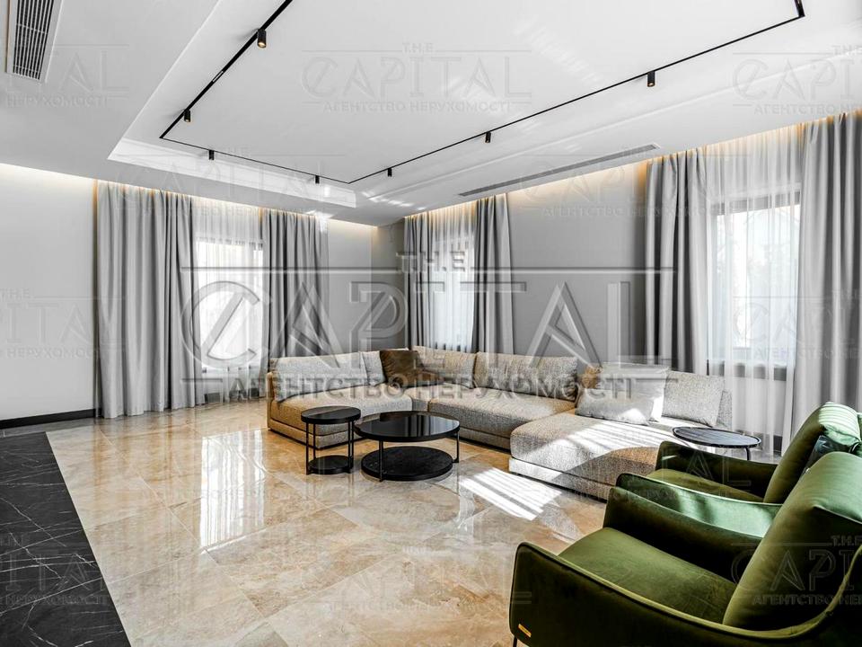 Предлагается новый дом в коттеджном городке Французский городок, в селе Козин, район Конча-Заспа. Дом в лесу возле озера. Цокольный этаж: спа зона, хамам. Два отдельных выхода: 4 больших помещения для хранения вещей, спортзал, прачечная, цоколь под всем домом. Описание дома: 1-й этаж: прихожая, просторная гостиная, кухня, столовая с выходом на террасу, гостевая спальня с санузлом, гостевой санузел, котельная. 2-й этаж: мастер-спальня со своей ванной и гардеробом, спальня, 3 спальни с ванными комнатами, кабинет.