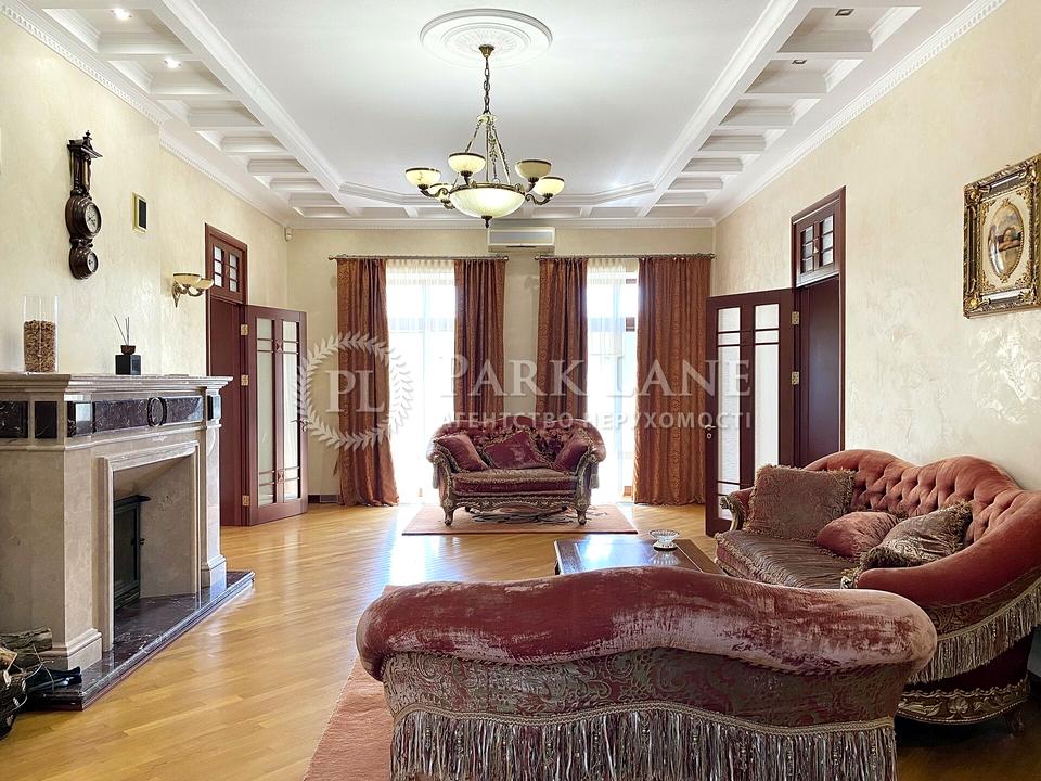 Конча-Заспа Дамба, площа 720 м.кв., гостьова кімната з каміном, друге світло, SPA-зона (критий басейн 12 м., сауна, спортзал), шість спальних кімнат, шість сан.вузлів, ігрова кімната, окремий блок для персоналу, гараж на два авто. Земельна ділянка 0,6Га з виходом на р. Козинка, газон, авто полив, критий ангар для човнів, крита альтанка з комплексом барбекю, дорслі паркові дерева та рослини, плодоносний фруктовий сад.