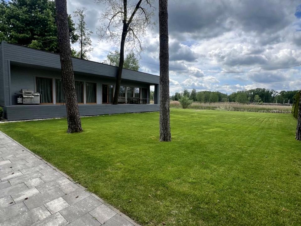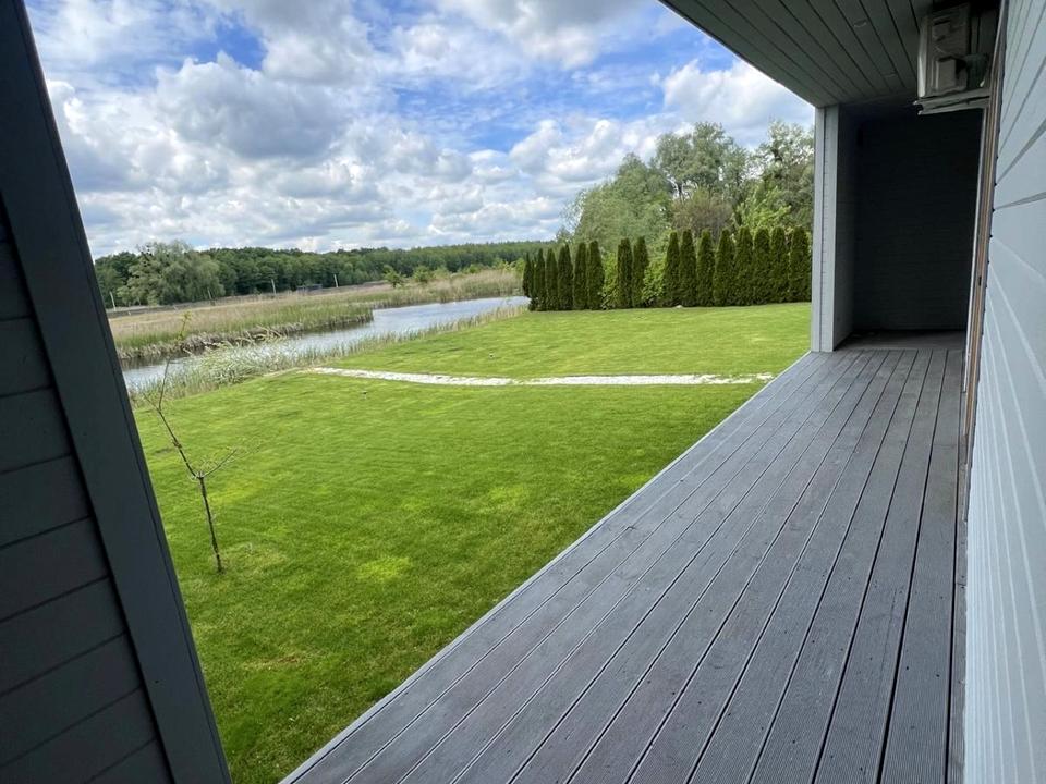 Унікальний фінський будинок в лісі на березі озера. Голосіївський район Києва, Конча-Заспа, хутір Мриги, з двох сторін національний парк. Лебеді, косулі, іноді на ділянці, дуби, сосни - постійно. Комфортний сучасний будинок для активної молодої сімʼї. Великий потенціал для спортивних можливостей. Будинок 280 м з них 140 м трьохстороння тераса. Панорамне остіклення, стерта межа між будинком і природою. Фантастичний краєвид на захід. Сучасне планування, вікна на три сторони світу, три тераси, три спальні, камін, кухня, столова-вітальня, жодного коридору.
