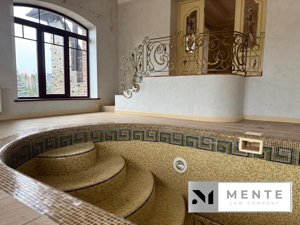 Шикарний особняк в елітному містечку закритого типу Кончі-Заспи, має власний вихід на затоку Дніпра. Будувався для себе з якісних і дорогих матеріалів з дотриманням всіх технічних норм. Фасад будинку віполнен з клінкерной цегли. У будинку окреме приміщення з басейном, камінний зал, центральна канальна вентиляція Daikin, вся техніка Miele, іспанська плитка, мармур, паркет, сигналізація. Окремо розташований гостьовий будиночок з барбекю, гараж на 3 автомобілі, будинок охорони, причал для яхти.