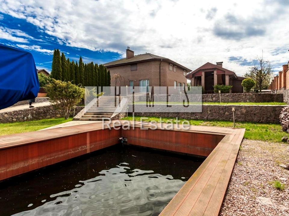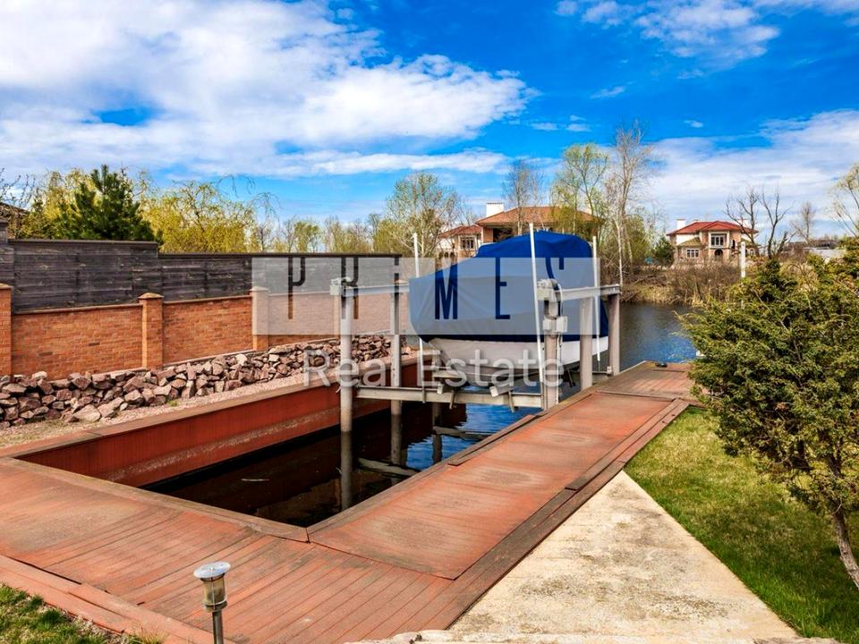 Площа ділянки – 15 соток. Ландшафтний дизайн, плодові дерева, власний причал 12 метрів з укріпленою береговою лінією. ЕЛІНГ замериканським підйомником для власного човна!!
