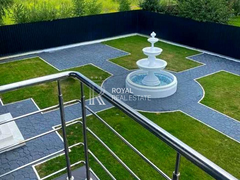 Ділянка: 7,5 соток з газоном, автополивом, фонтаном, альпійськими гірками, ставком та парковкою. Поруч озеро і парк.