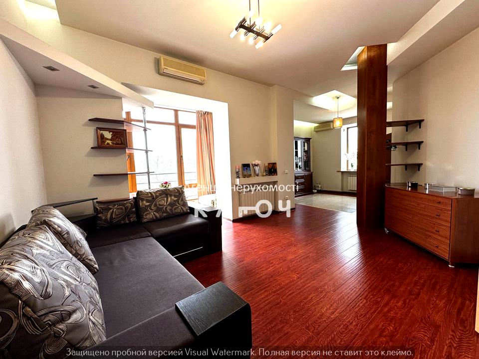 В квартире 4 комнаты, высота потолков 3.5 метра, Тип будинку - Сталінка. Есть газ, кухонная плита газовая. Есть 2 балкона. Общее состояние квартиры - С ремонтом. Горячая вода - газовый котел. Количество санузлов: 2. Тип кухни - отдельная кухня. Количество спален: 3. Комиссия за услуги 4 %