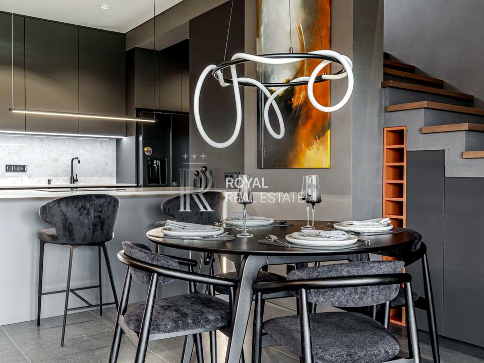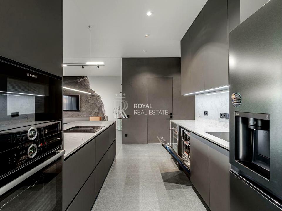 Перший поверх: простора кухня-вітальня, кабінет з диваном, санвузол з душем, гардероба та технічна кімната;