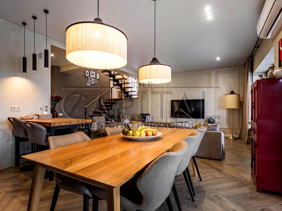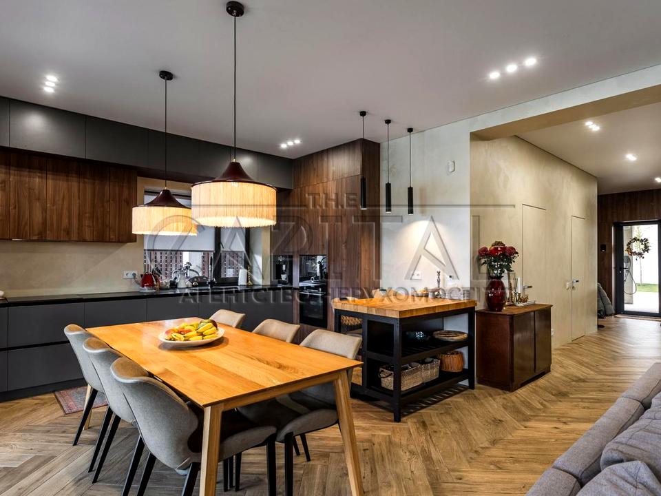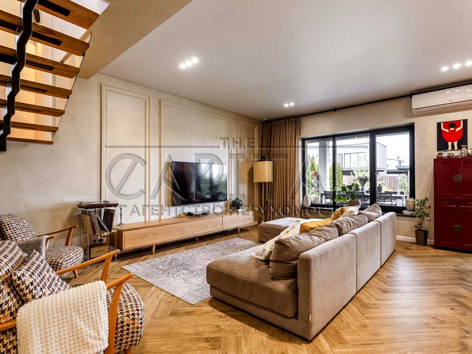 Пропонується до продажу стильний двоповерховий будинок площею 175 м² з великою терасою 90 м², розташований на доглянутій ділянці 5 соток.