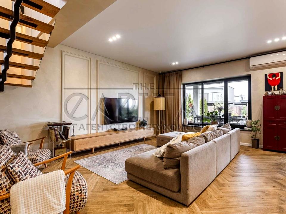 Будинок виконаний у сучасному стилі “Брутал”, а ремонт — у витонченому стилі Неокласика, де поєднані комфорт, дизайн і практичність.