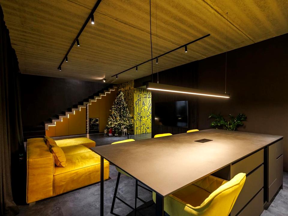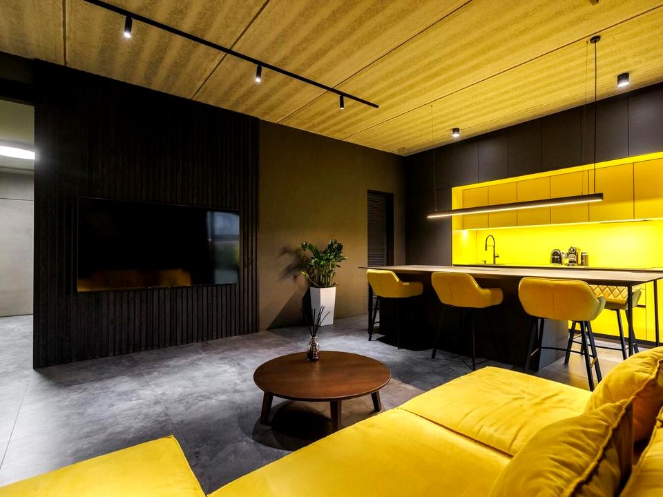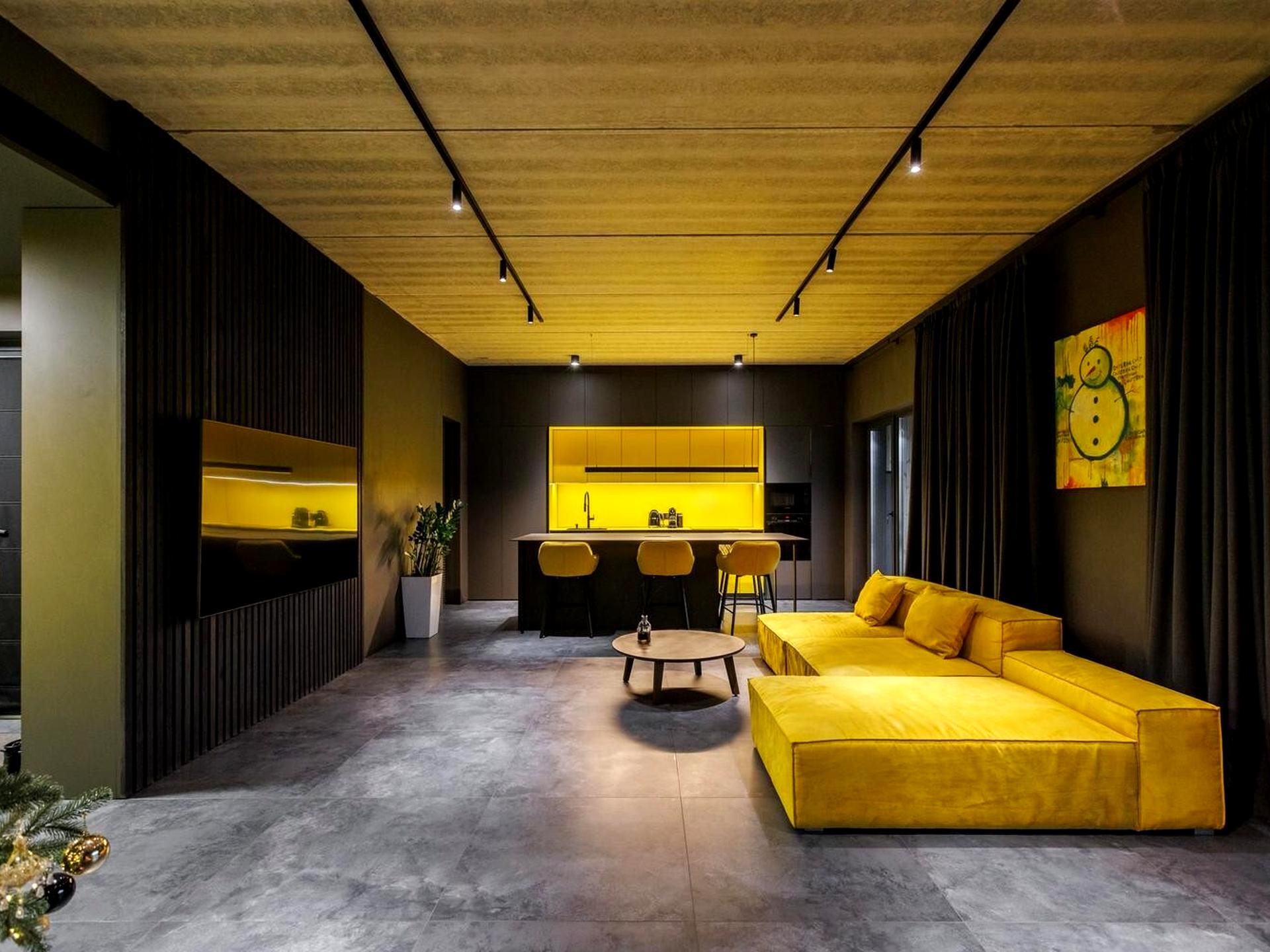 Простора кухня-вітальня з зоною відпочинку