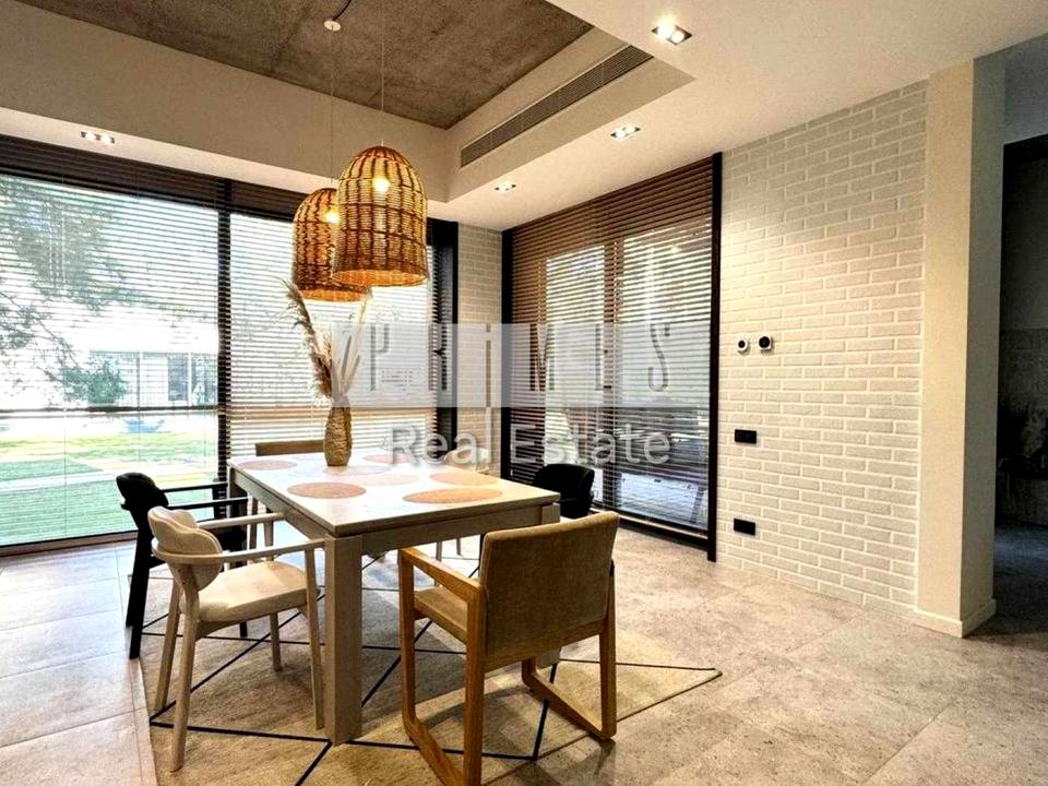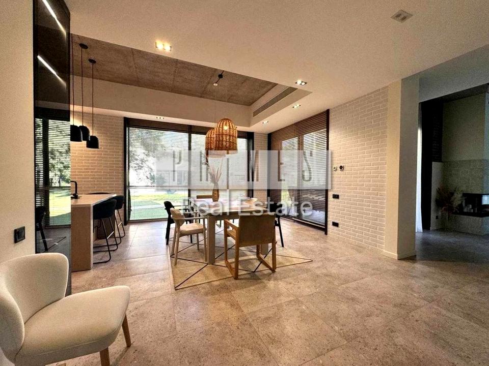На першому поверсі - простора кухня-вітальня, гостинний санвузол із душовою кабіною, пральня, затишна зона для читання та вихід на террасу з обладнаною зоною барбекю. Інший поверх передбачає три окремі спальні кімнати - шкіряна з власною ванною та гардеробною. З основної спальні – прямий вихід на приватну терасу.