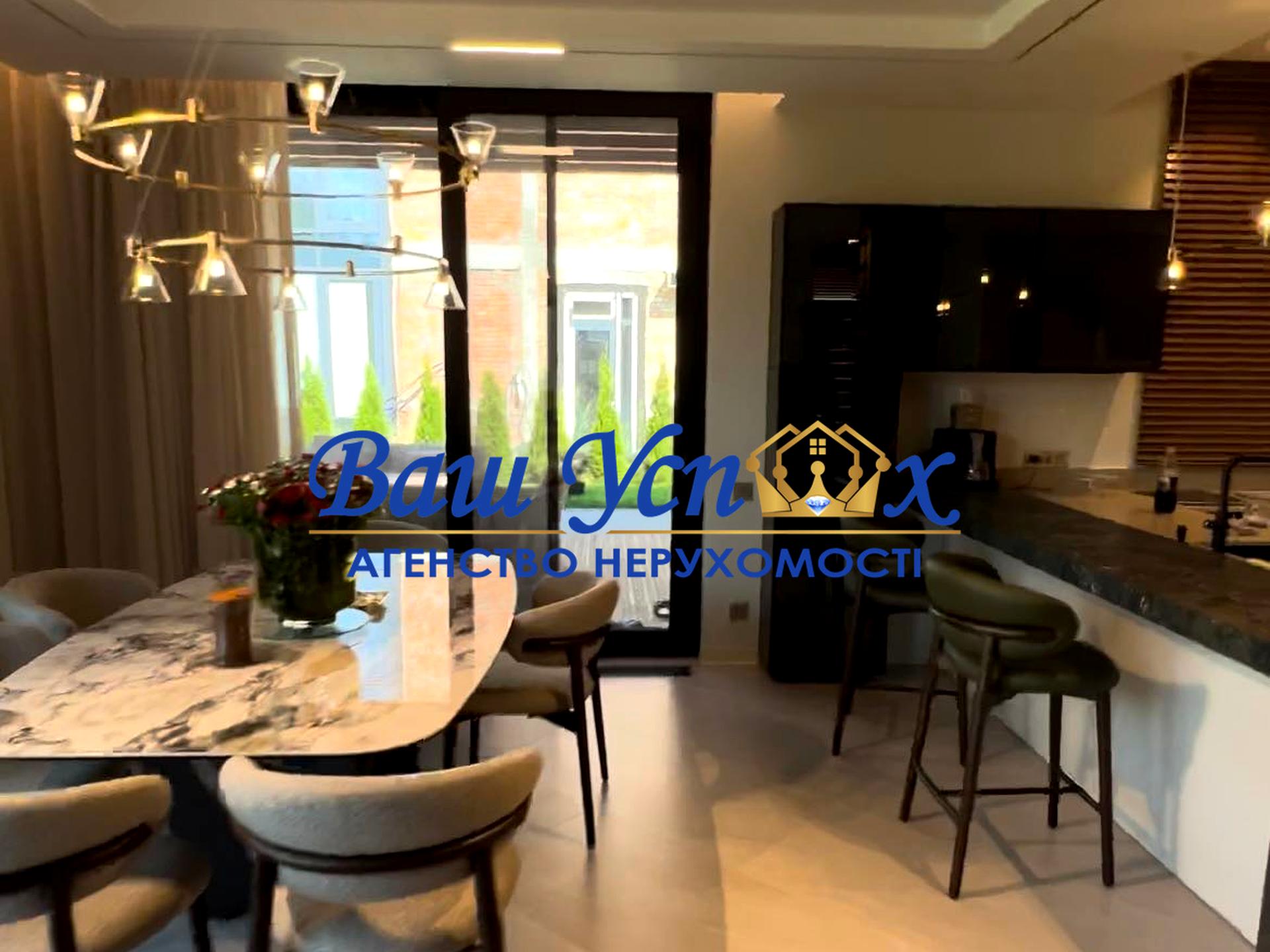 оздоблення будинку виконане згідно дизайн-проекту з використанням сучасних матеріалів та технологій, оздоблення підлоги першого поверху виконані з керамограніту (Італія) та натурального дерева (паркет дошка Італія),