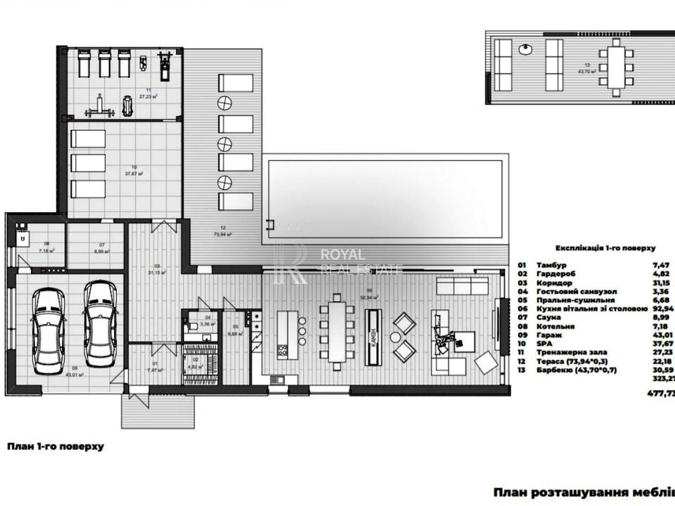 Площа будинку: 491 м²