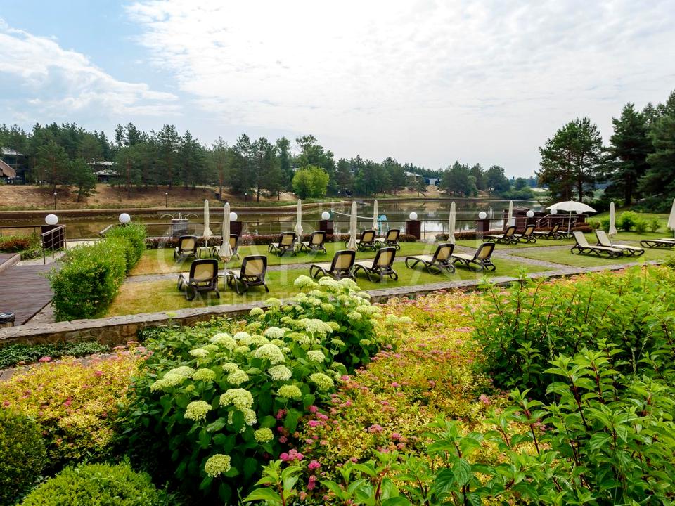 Площа ділянки - 11 соток з ландшафтним дизайном, висадженими вічнозеленими рослинами та автополивом. Є вихід до озера.
