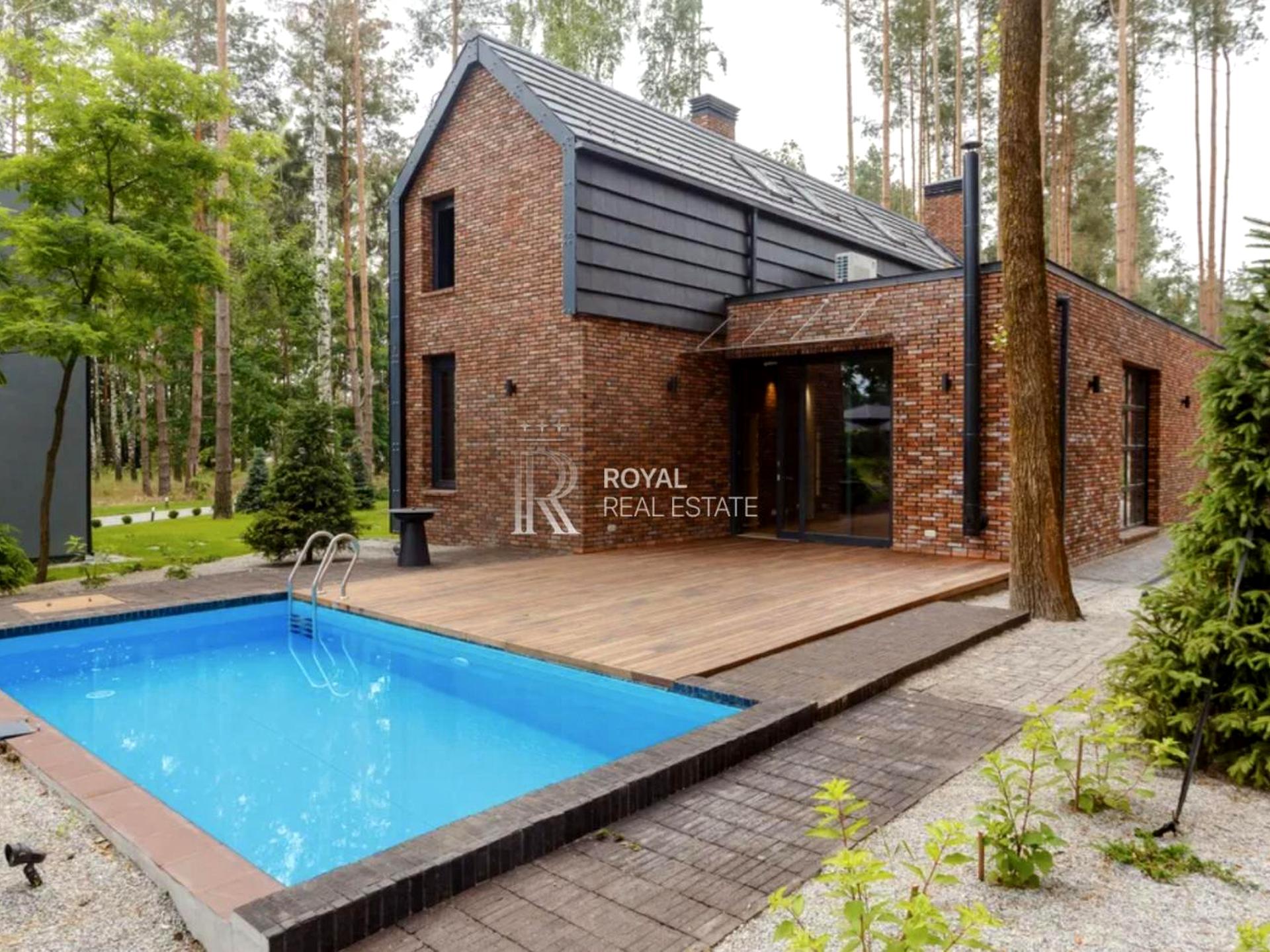 Коробка моноліт з утепленням 200 мм фанерована клінкерною цеглою ручного формування, керамічна черепиця, підлога дуб, підлога в санвузлах тик, автоматичні штори, кухня з натурального дерева з технікою виробництва Італія.