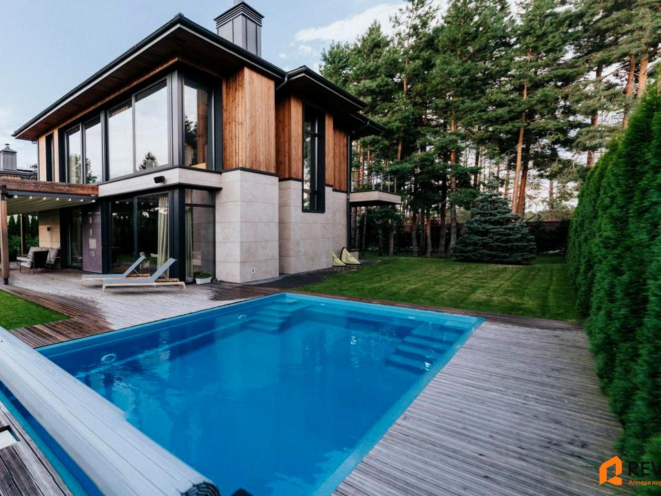 Дом, 2 этажа, 5 комнат. Материал стен – монолитно-бетонный, фундамент дома – железобетон, материал перекрытий – монолитный железобетон. Подъезд к дому – асфальт. Площадь участка 14 соток. Покрытие полов: покрытие полов - дерево, покрытие полов - плитка, покрытие полов - паркет. В доме 1 балкон. Тип кухни - кухня-студия. Нет подвала. В доме есть Телевизор, Подогрев полов, Камин, Кондиционер, Стиральная машина, Сушильная машина, Душевая кабина, Ванна, Холодильник, Микроволновка, Посудомойная машина, Сигнализация, Автополив, Газон, Сад/огород, Зона мангала, Терраса, Беседка, Бассейн. Дом построен в 2023 году. Своя канализация. Общее состояние дома - С ремонтом. Газ централизованный на участке. Холодная вода - скважина. Горячая вода - газовый котел. Отопление тепловой насос. Количество санузлов: 4. Тип автономной электроэнергии: генератор. Интернет оптоволоконный. Работает без света - вода, газ, отопление, интернет, резервное питание (акумуляторы/генератор). Количество паркомест: 2. Кухонная плита электрическая. Количество спален: 4. Без комиссии