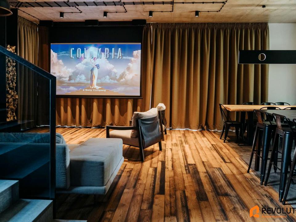 - Домашній кінотеатр: проектор Epson, ресивер Marantz, акустика Bowers & Wilkins