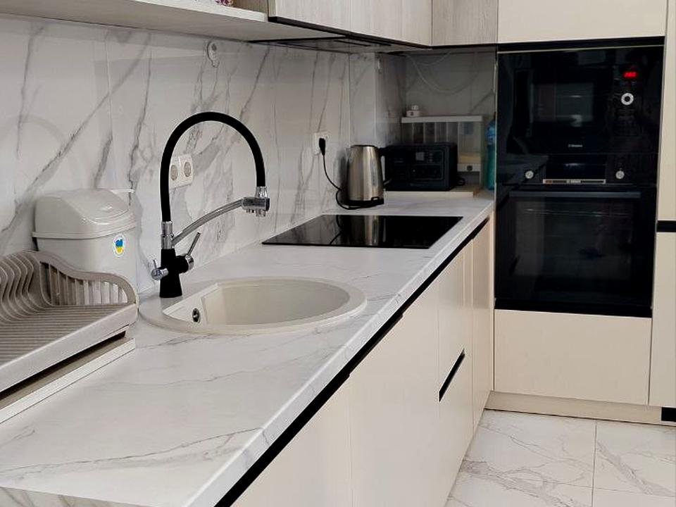 В квартире 1 комната. Вид из окон во двор. Планировка комнат Многоуровневая. Горячая вода - электрический бойлер. Отопление автономное. Совместный санузел, туалет/ванна. Окна металлопластиковые. Общее состояние квартиры - С ремонтом. Рядом есть школа, детсад, остановки, развлекательные заведения, супермаркет, парк, море. Работает без света - вода, отопление. Комиссия за услуги 50 %