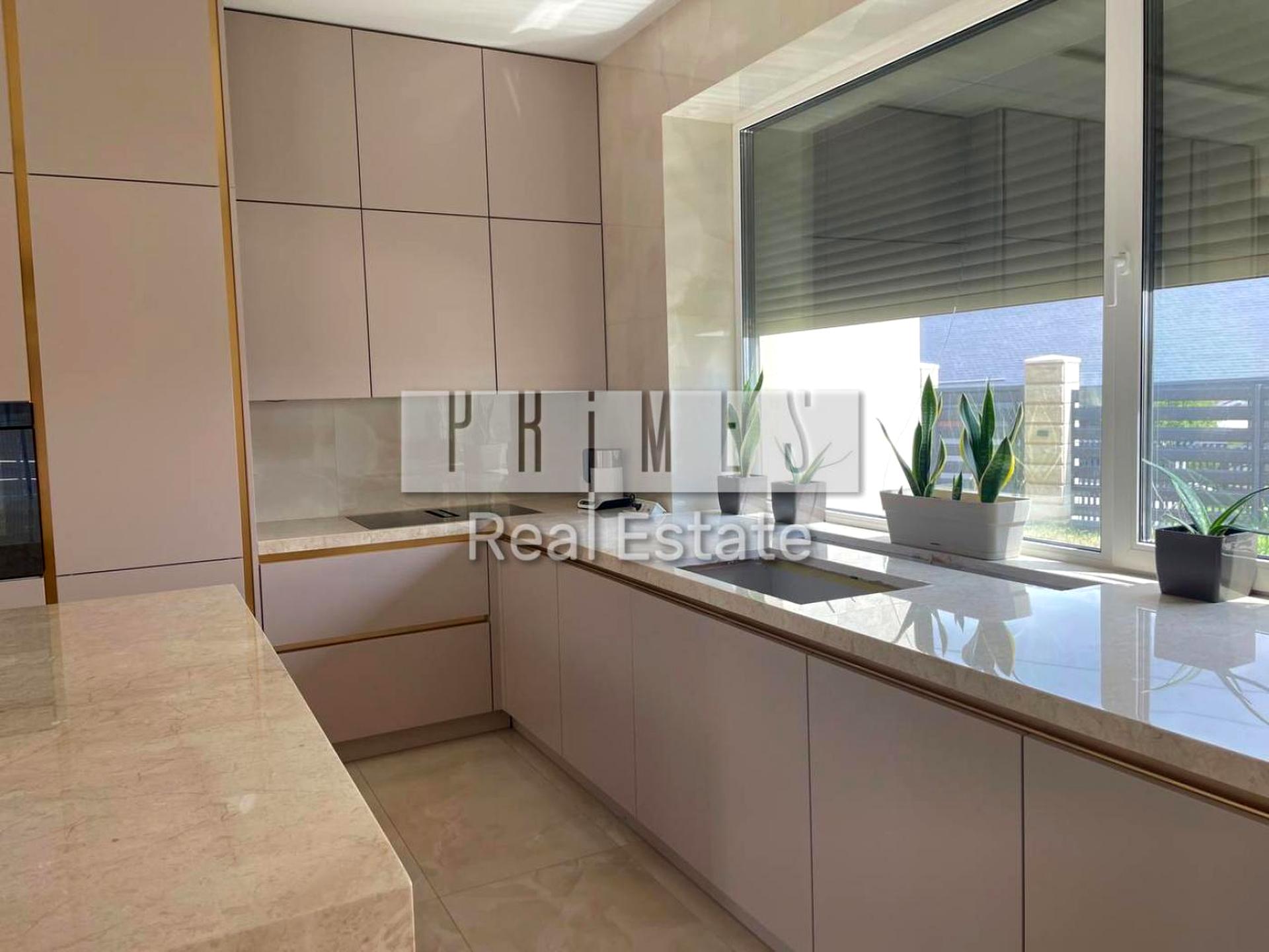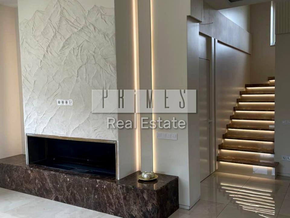Дом, 2 этажа, 5 комнат. Материал стен – кирпично-монолитный. Площадь участка 7 соток. Высота потолков 3 метра. Тип кухни - кухня-студия. Общее состояние дома - С ремонтом. Количество паркомест: 2. Кухонная плита электрическая. Количество спален: 3. Комиссия за услуги 3 %