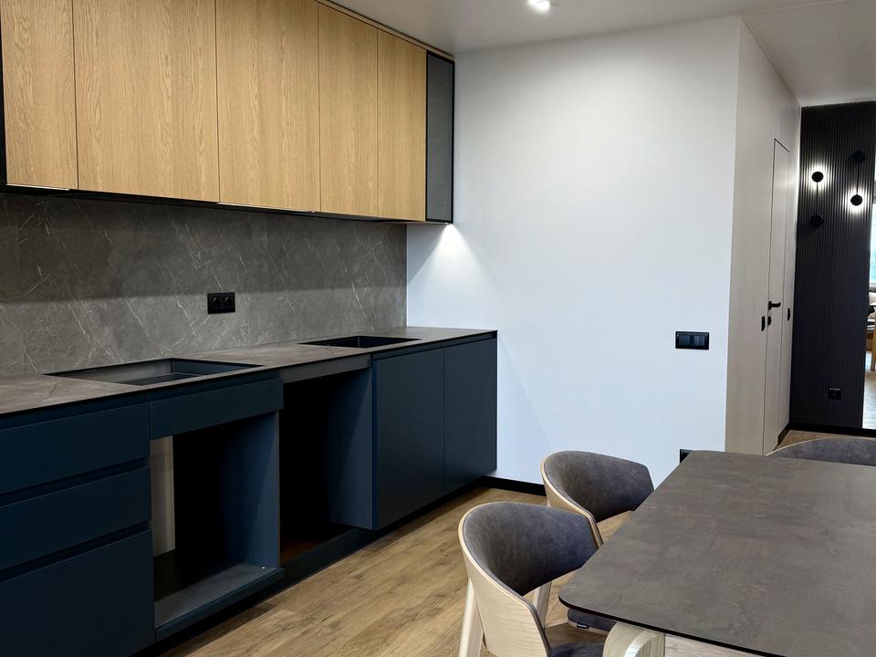 Квартира виконана у мінімалістичному стилі з використанням якісних матеріалів.