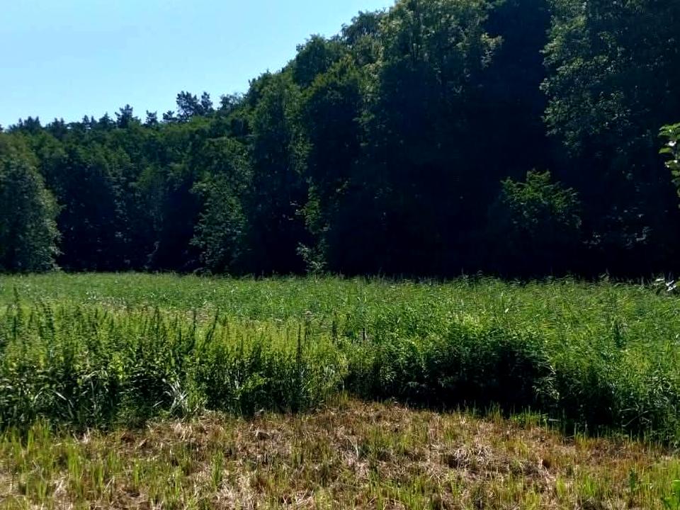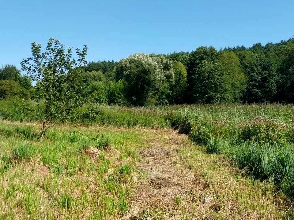 Ділянка з видом на ліс та водойму.