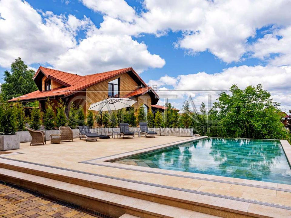 Ділянка 40 соток з газоном та автополивом. Також на ділянці фруктовий сад (яблука, сливи, груша, вишня, калина, малина, ожина), ростуть декоративні дерева (сосни, ялинки, туї, сакури, магнолії, клени, верба, горіх, липа, лаванда, самшит), озеро та басейн.