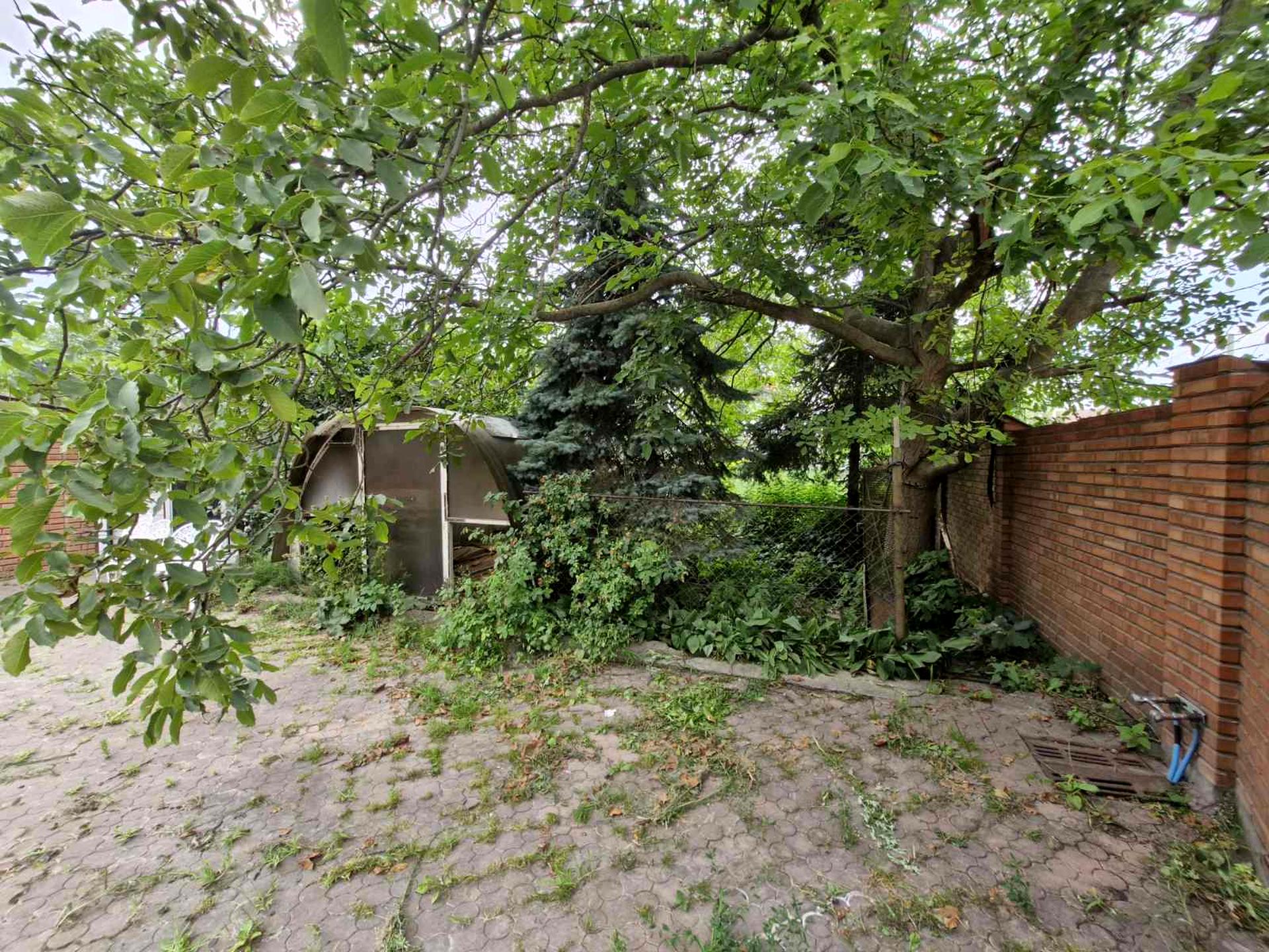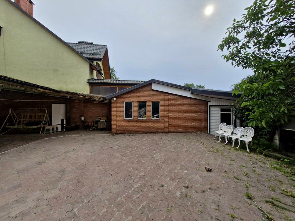 Територія огорожена, подвір'я в бруківці.