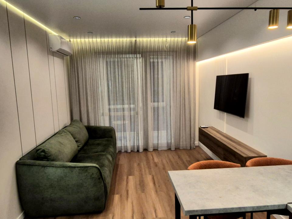 Дизайнерській ремонт, меблі та техніка, дві шафи, двоспальне ліжко, розкладний диван, пралка, посудомийка, кондиціонер, підігрів підлоги