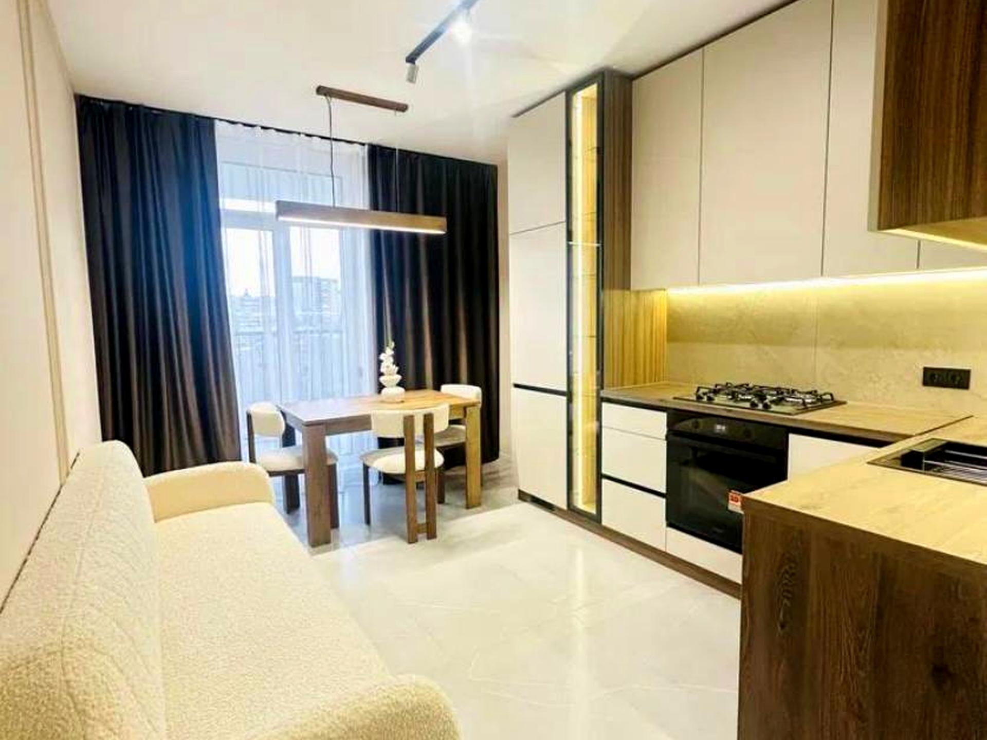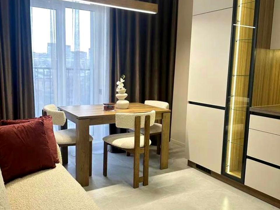 Квартира світла, з балконом, повністю умебльована та оснащена технікою: посудомийна машина, духовка, варильна поверхня, витяжка, холодильник, пральна машина, кондиціонер, підігрів підлоги.