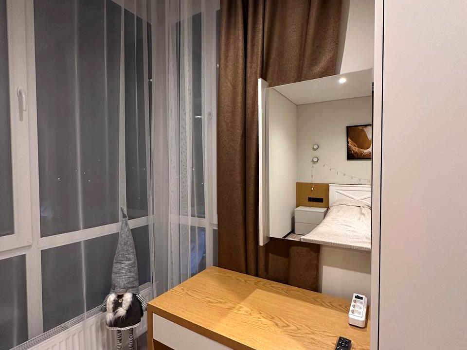 Оренда стильної та затишної 1-кімнатної квартири в сучасному житловому комплексі «Щасливий». Квартира повністю укомплектована всім необхідним для комфортного проживання — заїжджай і живи.