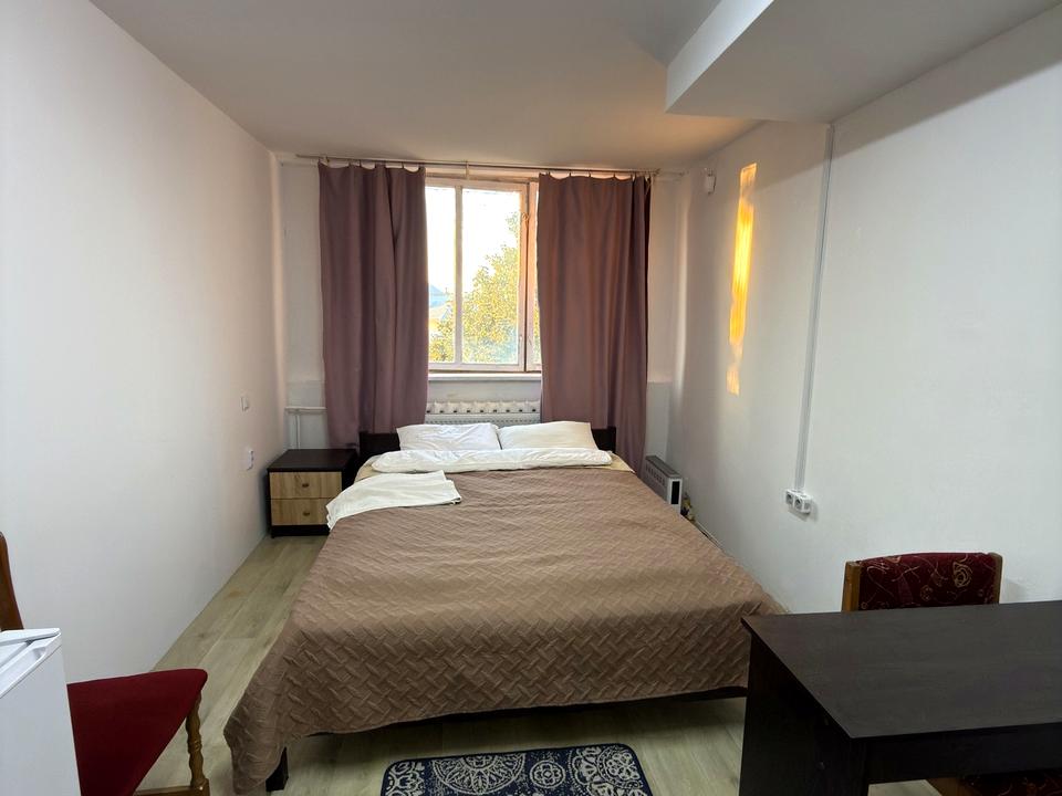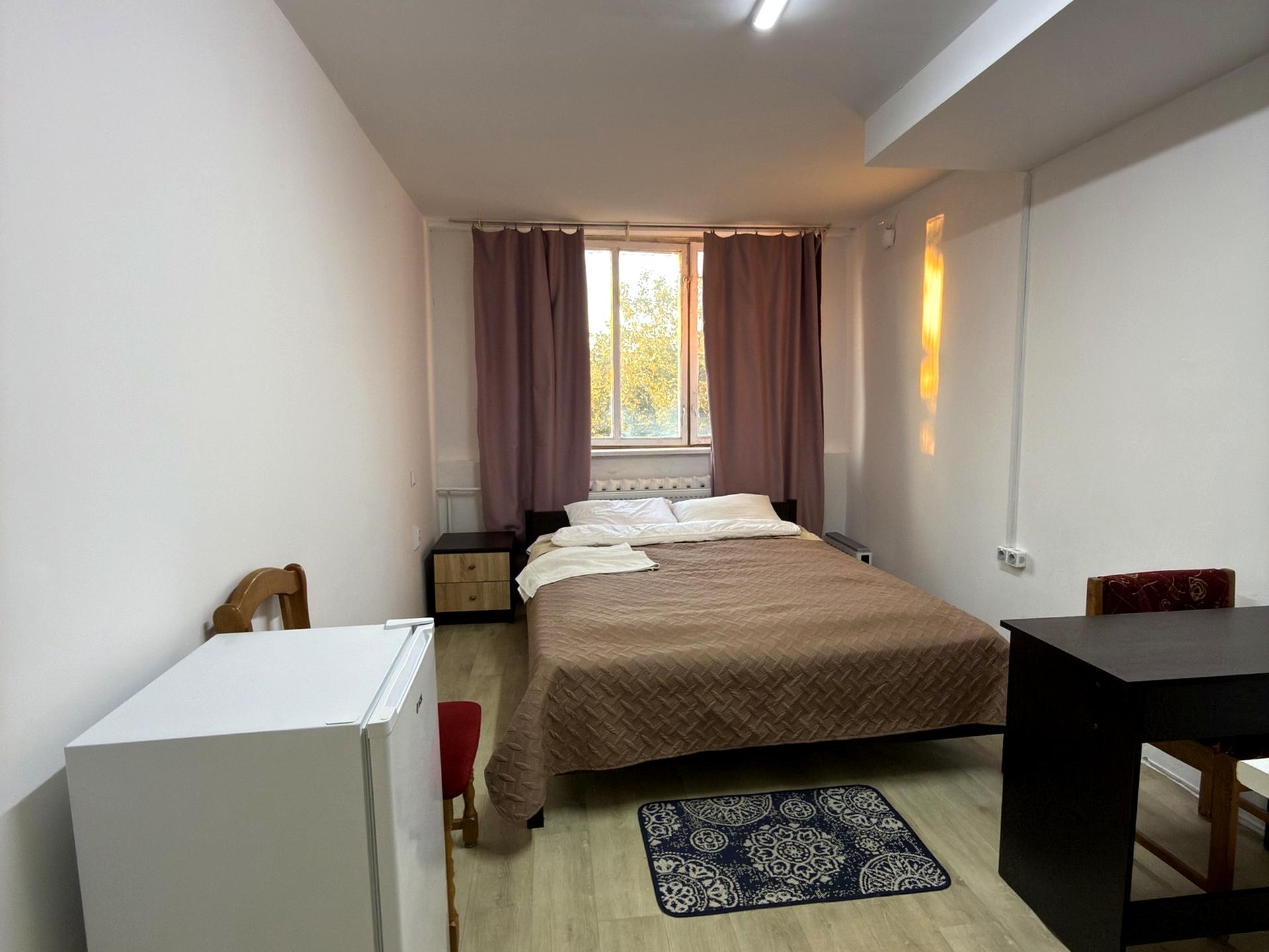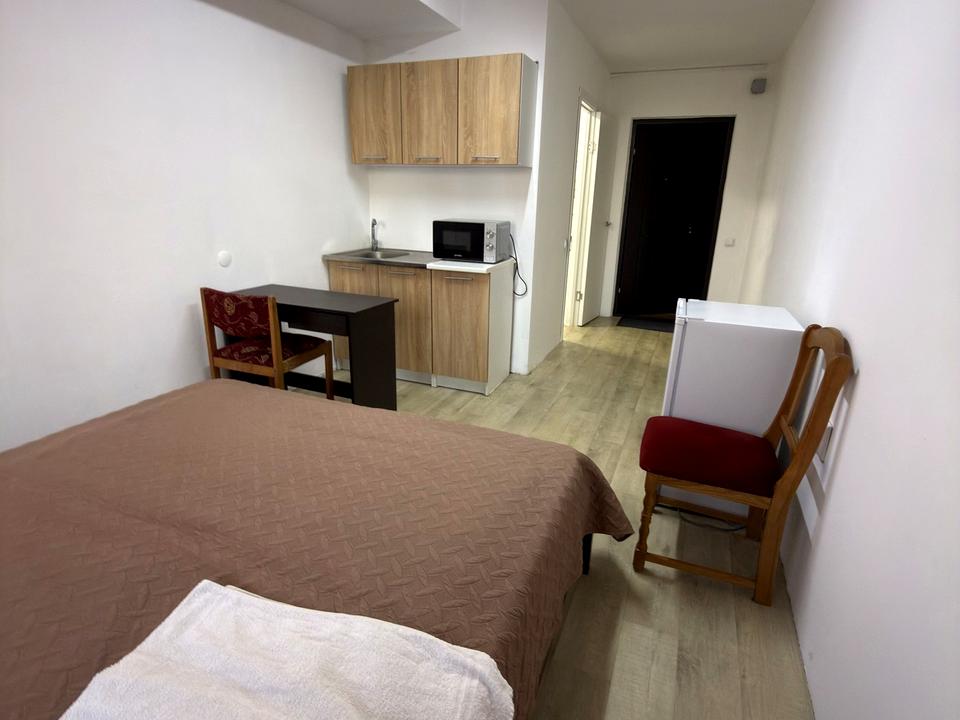 У кімнаті: двоспальне ліжко з ортопедичним матрацом, комод, шафа, робоча зона (столик з кріслом), простора кухня (мікрохвильова, чайник, електроплита, холодильник) та свій суміжний санвузол (душ). Опалення індивідуальне електричне, є власна котельня.