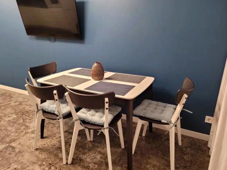 Особливості: 1. ліжко + матрас безпружинний ортопедичний 2. 2 кондиціонери (в кімнаті і кухні) (з підтримкою Wi-Fi) 3. Smart TV Samsung 50 4. cигналізація 5. посудомийна машина Bosch 6. фарбовані фасади (кухня та прихожа) 7. Індивідуальне опалення, підігрів підлоги 8. ергономічні стільці