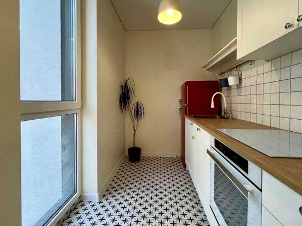 Є все необхідне: вбудована кухня, індукційна плита, духовка, мікрохвильова, електрочайник, фільтр для води, двоспальне ліжко, шафа, письмовий стіл. Душ без сходинок, підвісний туалет, дзеркало з підсвіткою. Телевізор – за домовленістю.
