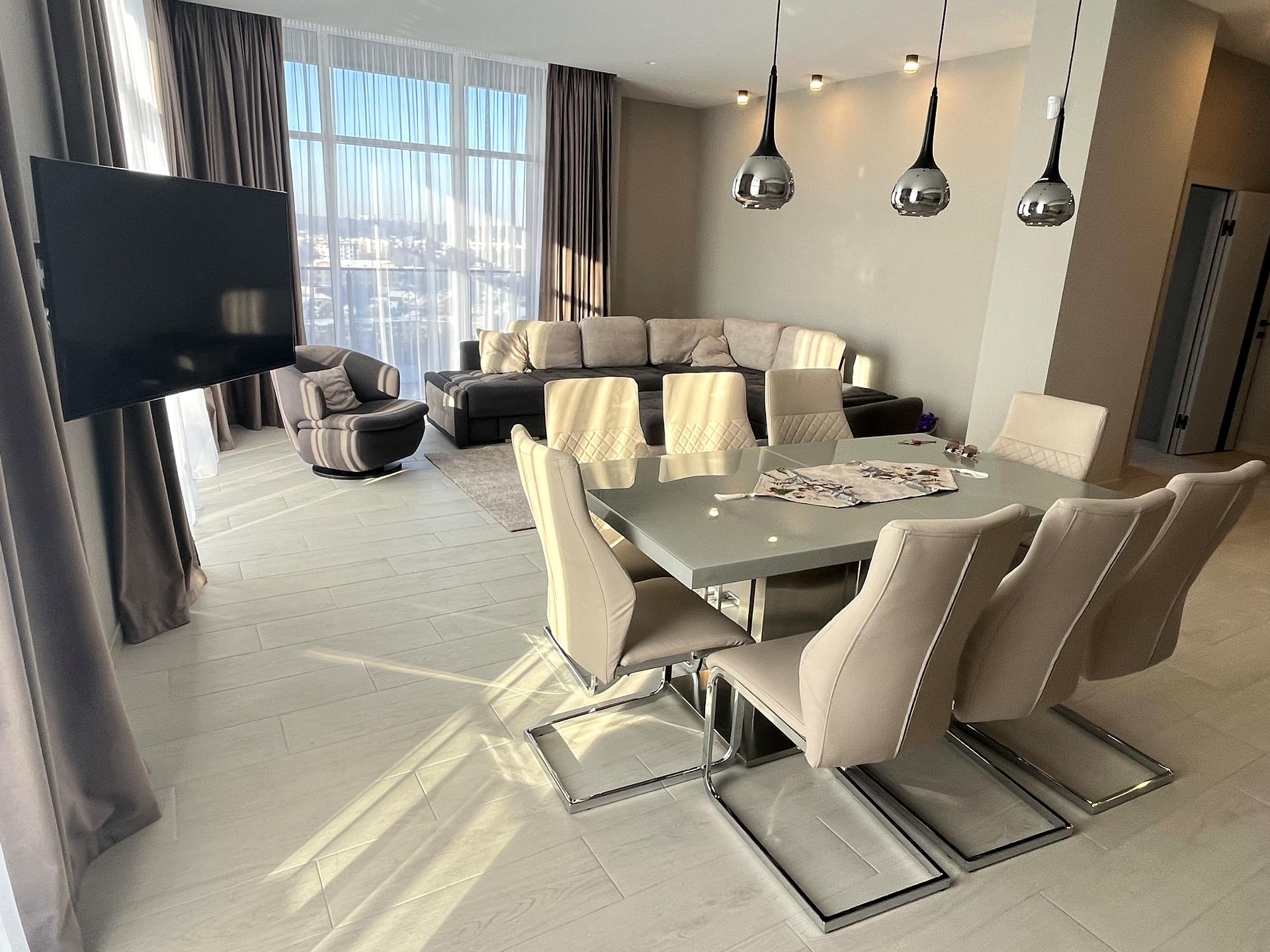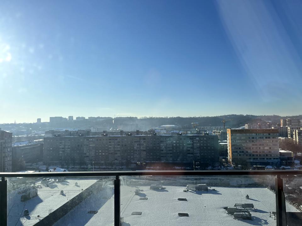 Простора кухня студія з шикарними виглядом з вікон та виходом на балкон та велика спальня.