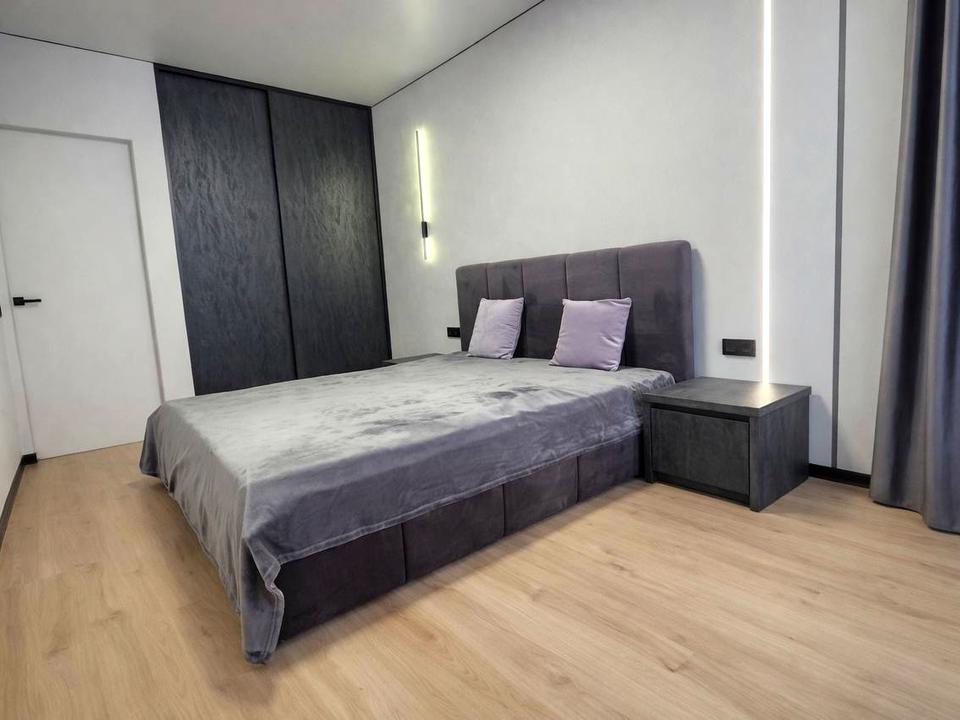 Планування: окрема спальня (17 м²) з двоспальним ліжком та гардеробною, простора кухня-студія (25 м²), суміжний санвузол.