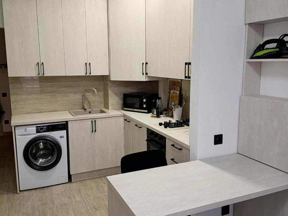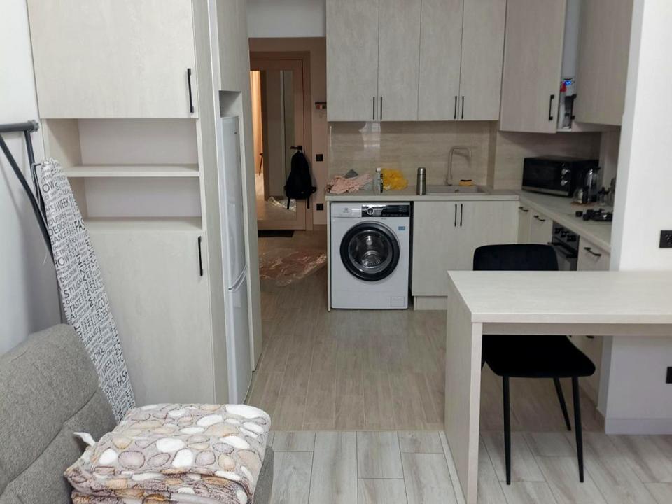 В квартире 1 комната, высота потолков 2.8 метра, Технологія будівництва - Монолітно-каркасна, Тип будинку - Спец. проект. Есть газ, кухонная плита газовая. Есть балкон. В квартире есть Телевизор, Подогрев полов, Стиральная машина, Душевая кабина, Холодильник. Дом построен в 2019 году. Общее состояние квартиры - С ремонтом. Горячая вода - газовый котел. Количество санузлов: 1. Интернет оптоволоконный. Работает без света - вода, газ, отопление, интернет. Тип кухни - кухня-студия. Количество спален: 1. Комиссия за услуги 100 %
