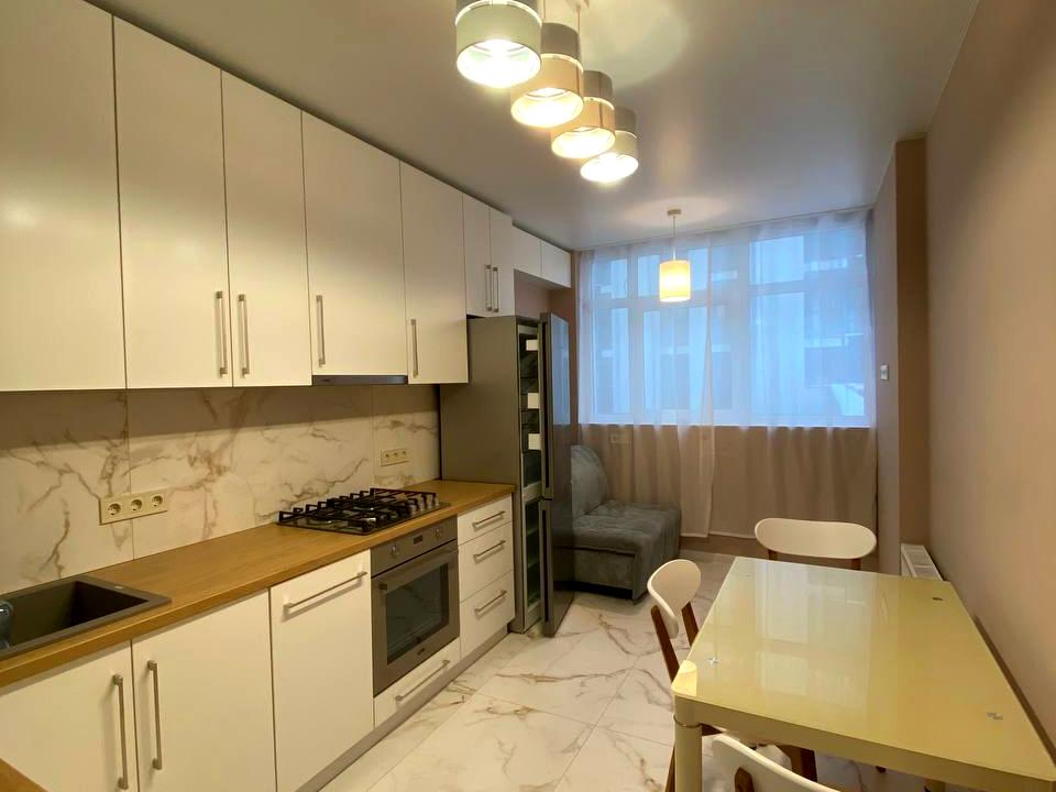 В квартире 1 комната, Технологія будівництва - Монолітно-каркасна, Тип будинку - Спец. проект. Есть газ, кухонная плита газовая. Балкона нет. В квартире есть Телевизор, Подогрев полов, Кондиционер, Стиральная машина, Ванна, Холодильник, Микроволновка, Посудомойная машина. Дом построен в 2021 году. Общее состояние квартиры - С ремонтом. Горячая вода - газовый котел. Количество санузлов: 1. Интернет оптоволоконный. Работает без света - вода, газ, интернет. Тип кухни - кухня-студия. Количество спален: 1. Комиссия за услуги 100 %
