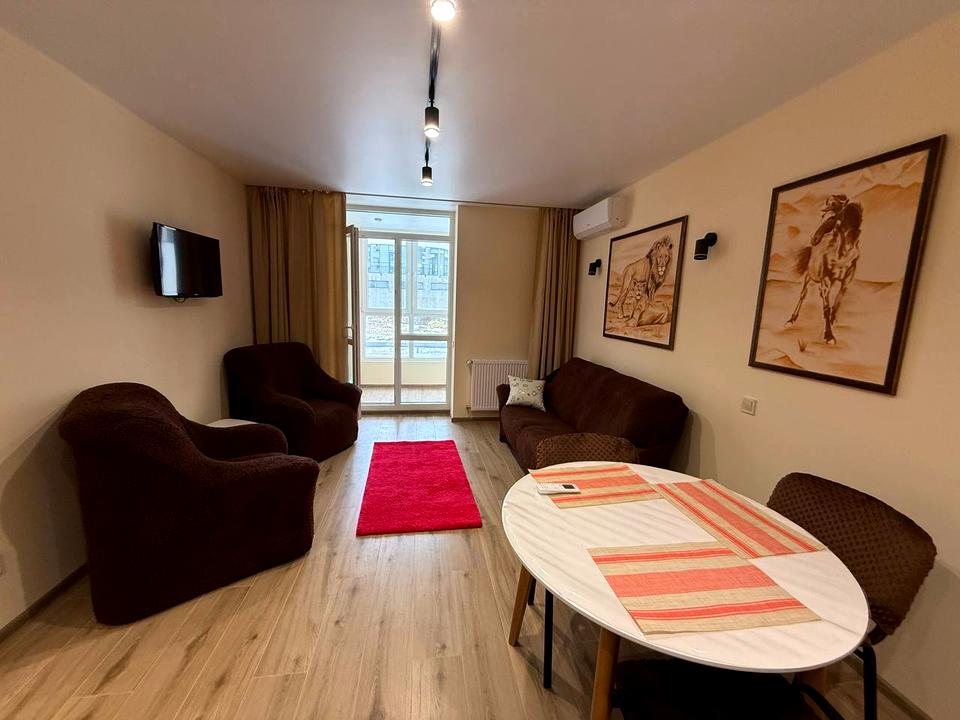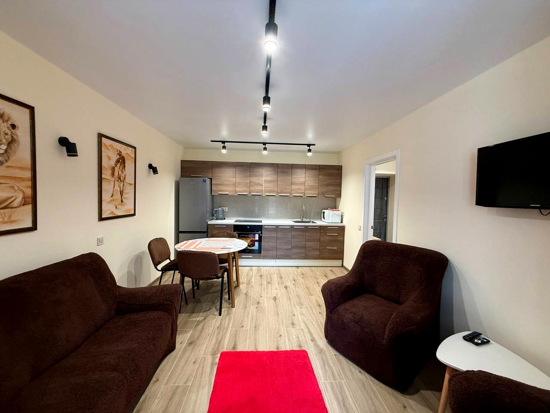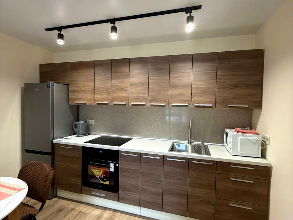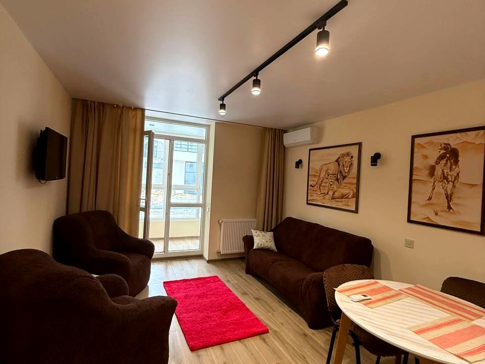В квартире 1 комната, Технологія будівництва - Цегляна, Тип будинку - Спец. проект. Газа нет, кухонная плита электрическая. Есть балкон. В квартире есть Телевизор, Подогрев полов, Кондиционер, Стиральная машина, Душевая кабина, Холодильник, Микроволновка. Дом построен в 2024 году. Общее состояние квартиры - С ремонтом. Горячая вода - электрический бойлер. Количество санузлов: 1. Интернет проводной (кабельный). Тип кухни - кухня-студия. Количество спален: 1. Комиссия за услуги 100 %
