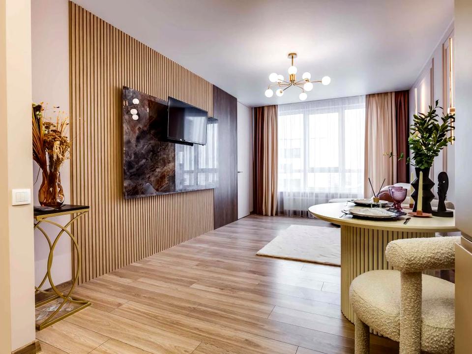 В квартире 1 комната, Тип будинку - Спец. проект. Есть газ, кухонная плита газовая. Дом построен в 2022 году. Общее состояние квартиры - С ремонтом. Горячая вода - газовый котел. Количество санузлов: 1. Тип кухни - кухня-студия. Комиссия за услуги 100 %