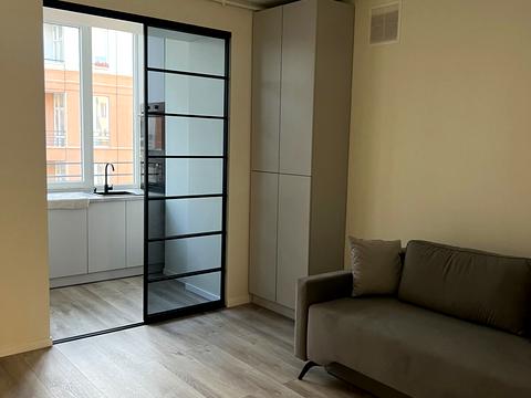 В квартире 1 комната, высота потолков 2.7 метра, Технологія будівництва - Цегляна, Тип будинку - Спец. проект. Есть газ, кухонная плита газовая. В квартире есть Телевизор, Душевая кабина, Холодильник, Посудомойная машина. Дом построен в 2023 году. Общее состояние квартиры - С ремонтом. Горячая вода - газовый котел. Количество санузлов: 1. Интернет оптоволоконный. Тип кухни - кухня-студия. Количество спален: 1. Комиссия за услуги 100 %