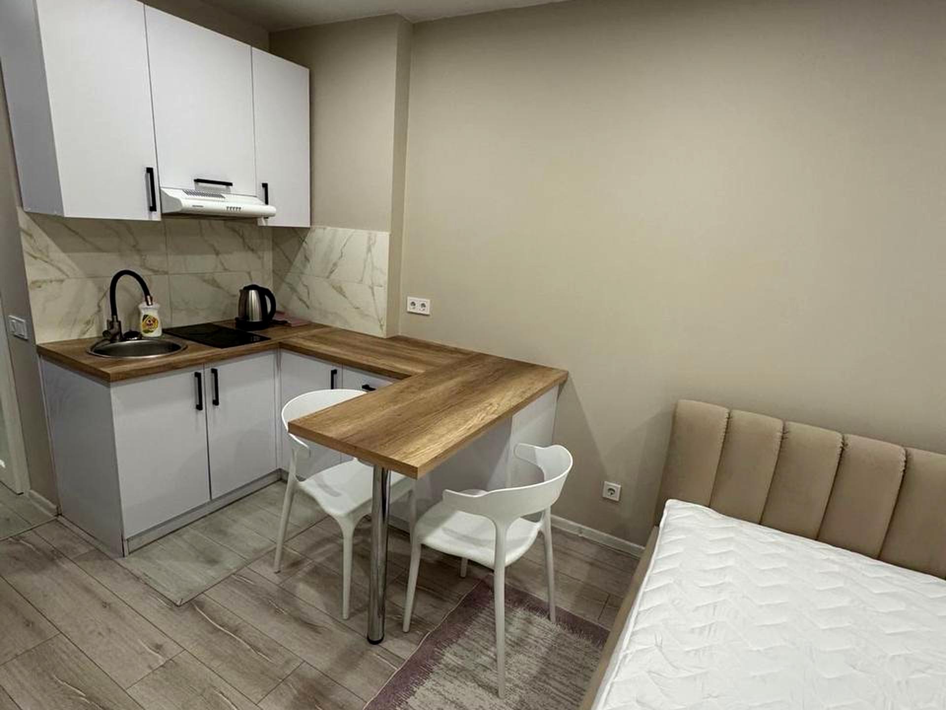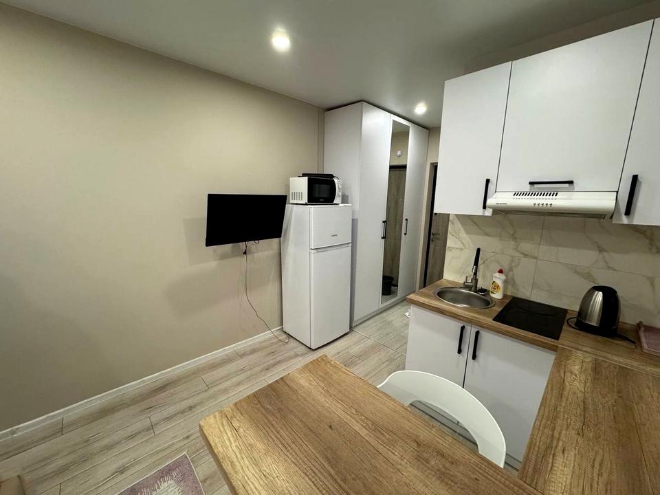 В квартире 1 комната. Есть газ, кухонная плита электрическая. В квартире есть Телевизор, Стиральная машина, Душевая кабина, Холодильник, Микроволновка. Общее состояние квартиры - С ремонтом. Горячая вода - газовый котел. Комиссия за услуги 100 %