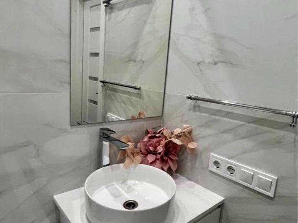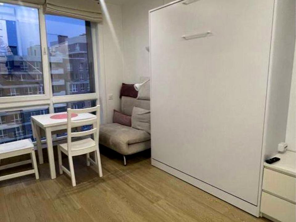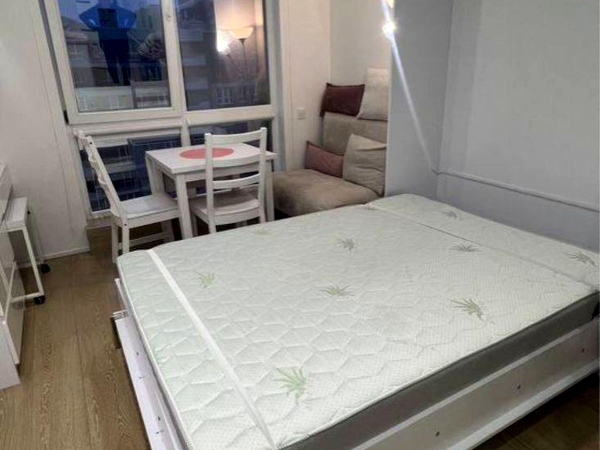 В квартире 1 комната. Кухонная плита электрическая. Балкона нет. В квартире есть Телевизор, Подогрев полов, Холодильник. Общее состояние квартиры - С ремонтом. Горячая вода - электрический бойлер. Количество санузлов: 1. Интернет оптоволоконный. Тип кухни - кухня-студия. Количество спален: 1. Есть подземный паркинг, доступный как укрытие. Комиссия за услуги 100 %