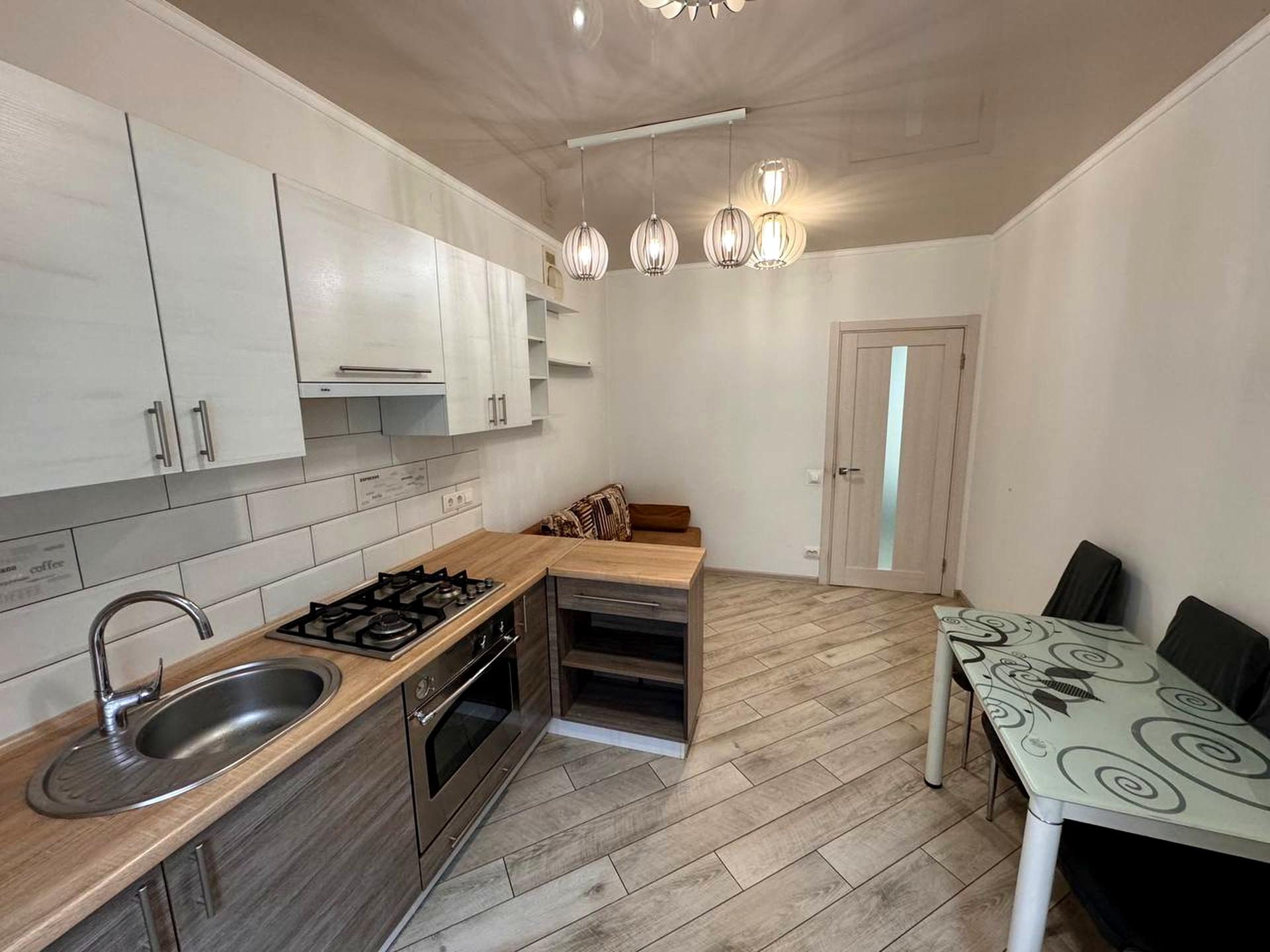 В квартире 1 комната, высота потолков 2.7 метра, Технологія будівництва - Цегляна, Тип будинку - Спец. проект. Есть газ, кухонная плита газовая. Балкона нет. В квартире есть Стиральная машина, Ванна, Холодильник, Микроволновка. Дом построен в 2018 году. Общее состояние квартиры - С ремонтом. Горячая вода - газовый котел. Количество санузлов: 1. Интернет оптоволоконный. Работает без света - вода, газ, отопление, интернет. Тип кухни - кухня-студия. Количество спален: 1. Есть подземный паркинг, доступный как укрытие. Инфраструктура территории: детская площадка, спортивная площадка, отделенная зона для выгула животных. Комиссия за услуги 100 %