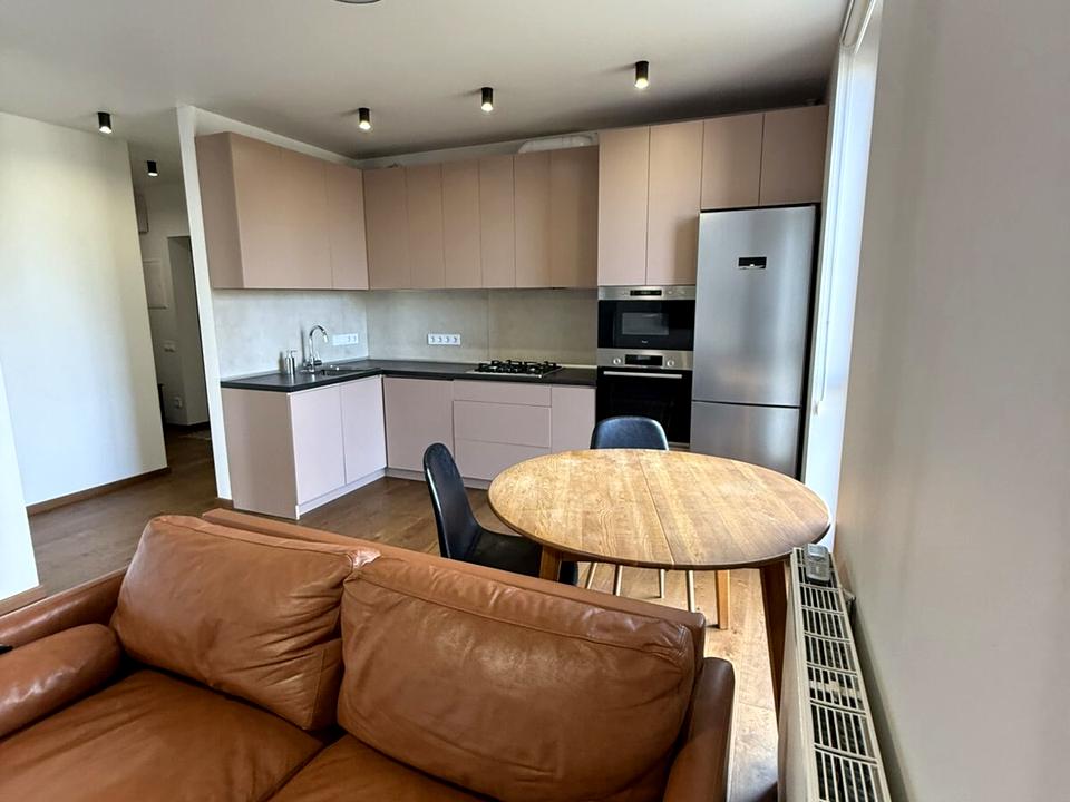 В квартире 2 комнаты, Тип будинку - Спец. проект. Есть газ, кухонная плита газовая. Есть балкон. В квартире есть Телевизор, Подогрев полов, Стиральная машина, Душевая кабина, Холодильник, Посудомойная машина. Дом построен в 2019 году. Общее состояние квартиры - С ремонтом. Горячая вода - газовый котел. Количество санузлов: 1. Работает без света - вода, газ, интернет. Тип кухни - кухня-студия. Количество спален: 2. Комиссия за услуги 100 %