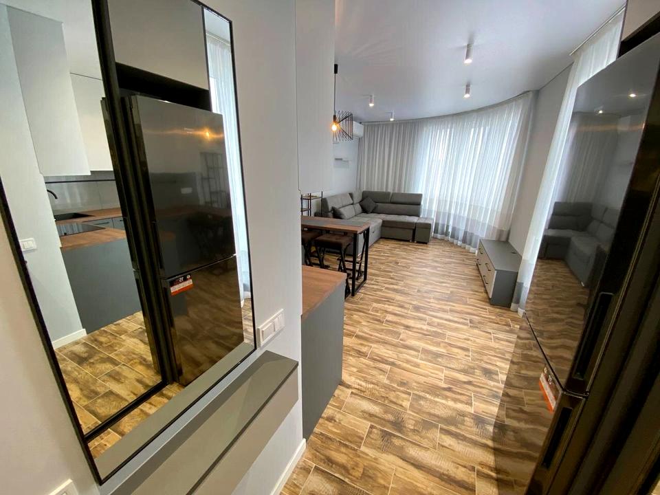 В квартире 1 комната, высота потолков 2.8 метра, Технологія будівництва - Блочна, Тип будинку - Спец. проект. Газа нет, кухонная плита электрическая. Балкона нет. В квартире есть Телевизор, Кондиционер, Стиральная машина, Душевая кабина, Холодильник, Микроволновка, Посудомойная машина. Дом построен в 2022 году. Общее состояние квартиры - С ремонтом. Безбарьерность: вход в дом на уровне земли. Горячая вода - электрический бойлер. Количество санузлов: 1. Интернет оптоволоконный. Работает без света - вода, отопление, интернет, лифт. Тип кухни - кухня-студия. Количество спален: 1. Нет подземного паркинга, доступного как укрытие. Инфраструктура территории: детская площадка, отделенная зона для выгула животных. Комиссия за услуги 100 %