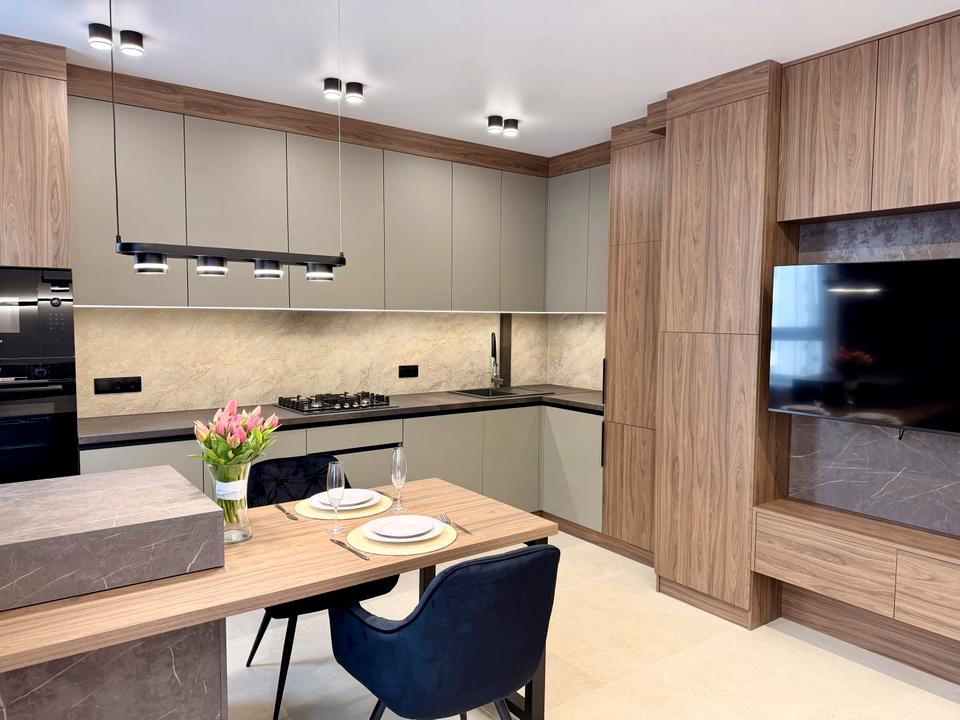 • Ремонт виконаний за індивідуальним дизайн-проєктом у сучасному стилі.