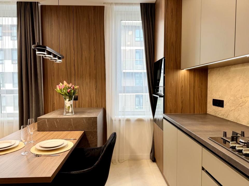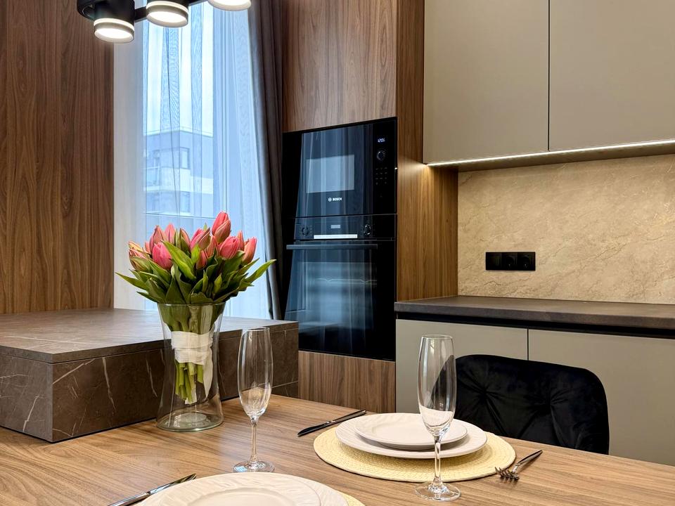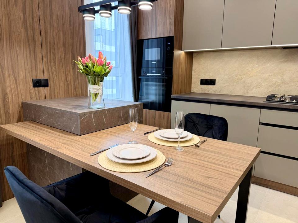 • Квартира обладнана якісною технікою: кондиціонер, посудомийна машина, вбудовані меблі.