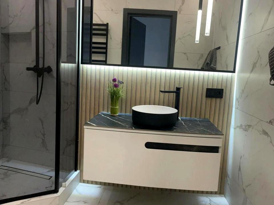 В квартире 2 комнаты, высота потолков 2.75 метра, Технологія будівництва - Блочна, Тип будинку - Спец. проект. Есть газ, кухонная плита газовая. В квартире есть Телевизор, Подогрев полов, Стиральная машина, Душевая кабина, Холодильник, Микроволновка, Посудомойная машина. Дом построен в 2021 году. Общее состояние квартиры - С ремонтом. Горячая вода - газовый котел. Количество санузлов: 2. Тип кухни - кухня-студия. Количество спален: 2. Комиссия за услуги 100 %