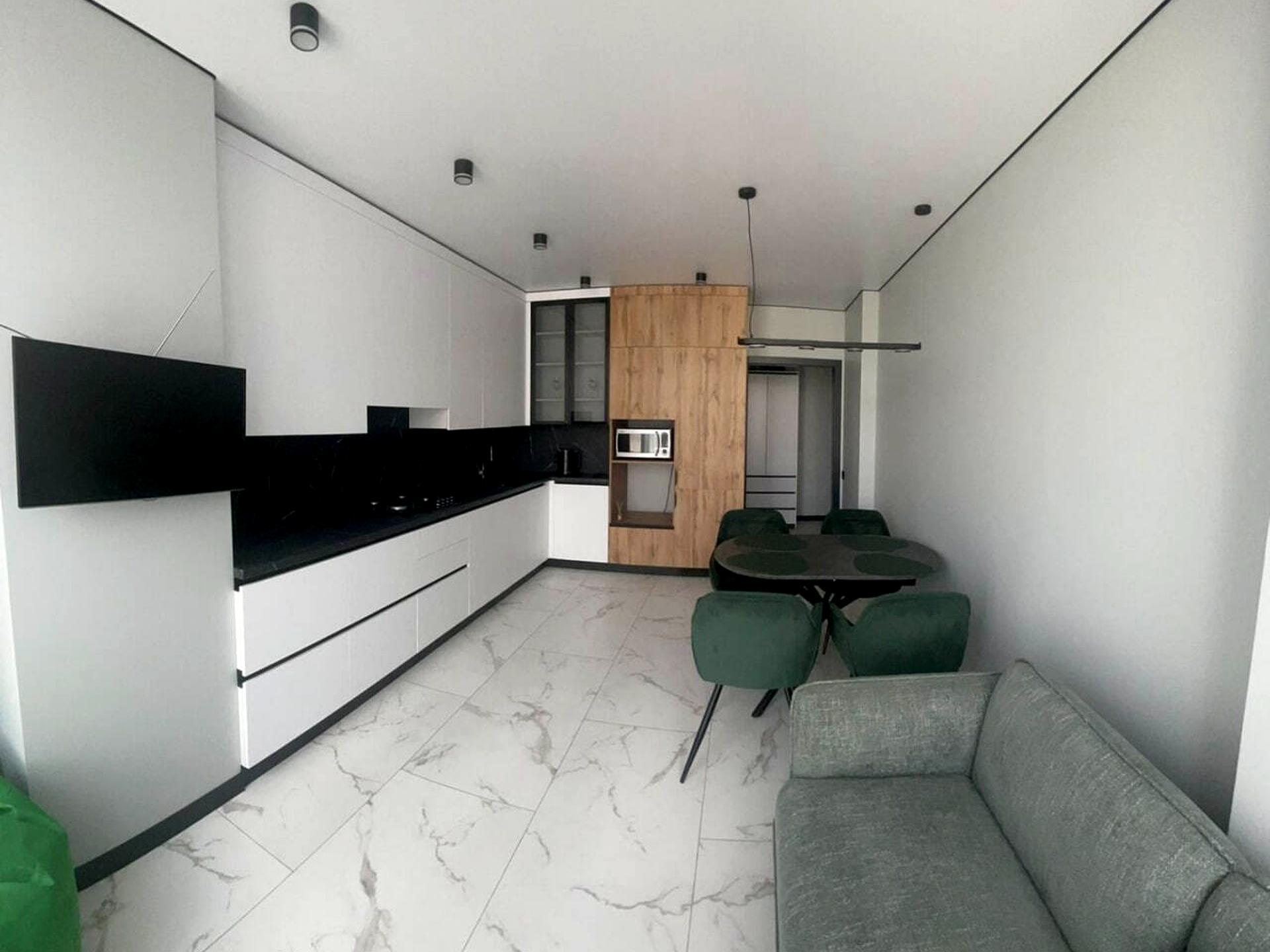 В квартире 2 комнаты, высота потолков 2.7 метра, Тип будинку - Спец. проект. Есть газ, кухонная плита газовая. В квартире есть Телевизор, Кабельное ТВ, Подогрев полов, Стиральная машина, Душевая кабина, Холодильник, Микроволновка, Посудомойная машина. Дом построен в 2024 году. Общее состояние квартиры - С ремонтом. Горячая вода - газовый котел. Количество санузлов: 2. Интернет беспроводной. Работает без света - вода, газ. Тип кухни - кухня-студия. Количество спален: 2. Инфраструктура территории: детская площадка. Комиссия за услуги 100 %
