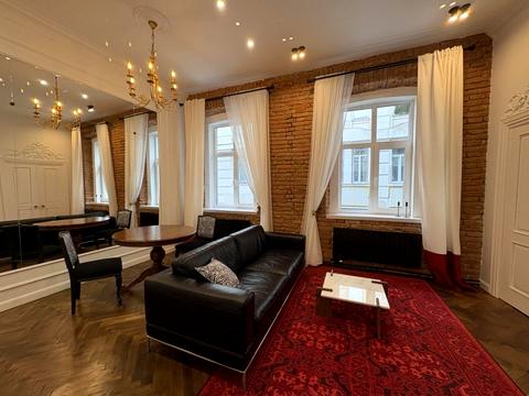 Продаж атмосферної дизайнерської квартири в центрі міста по вул. Менцинського (бічна вул. Гнатюка) Поруч університет та парк ім. Івана Франка, безліч крамниць і ресторанів, неподалік Оперний театр та площа Ринок. Тут поєднані естетика і функціональність на затишній вулиці в 5 хвилинах ходьби від всього культурного життя міста. Всі вікна в кімнатах фасадні, виходять на південну сторону на тиху вулицю. Охайний під'їзд з бетонними сходами. Велике сонячне доглянуте подвір'я. Трикімнатна квартира площею 58 м.кв., в якій зроблено капітальний ремонт із заміною всіх комунікацій. У просторій вітальні є зона їдальні ,електричний камін, дзеркало на всю стіну та автентична люстра 18 століття....